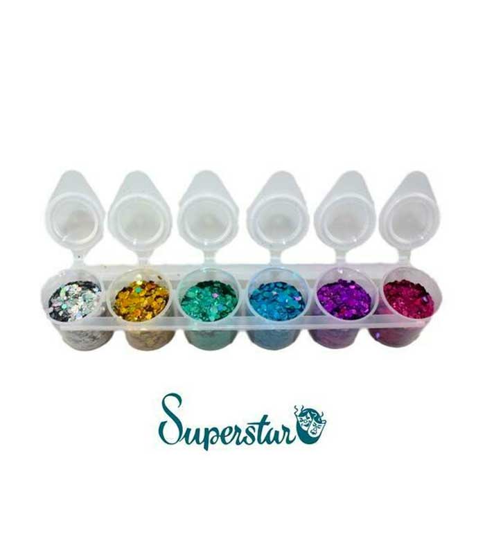 Pack con 6 tonos de glitter para rostro y cuerpo Chunky Mix de Superstar.