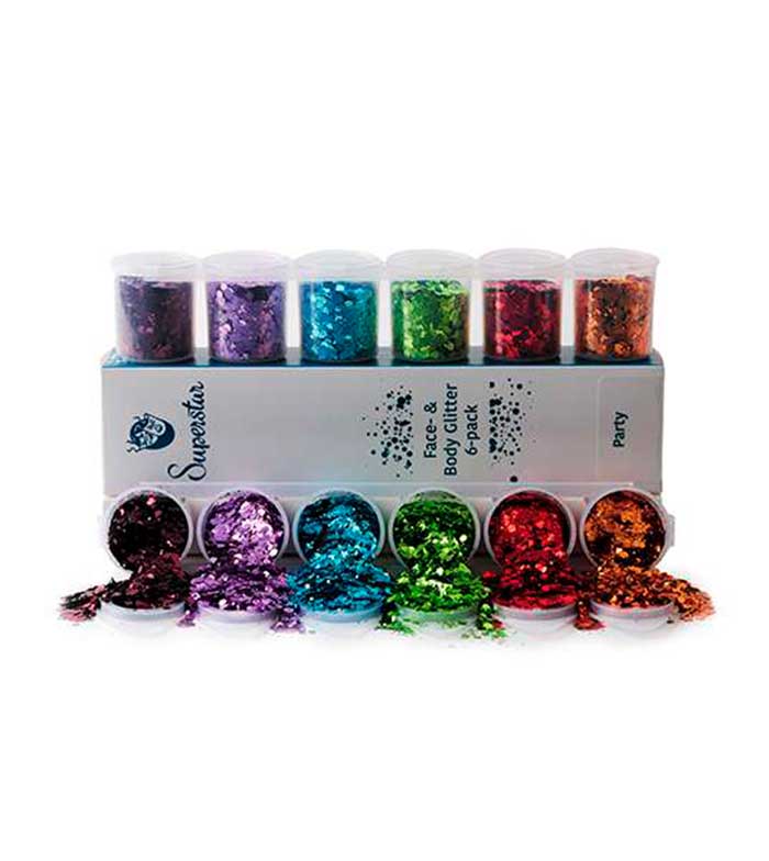Pack con 6 tonos de glitter para rostro y cuerpo Chunky Mix de Superstar.