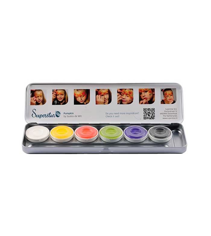 La paleta de 6 aquacolores básicos para rostro y cuerpo Halloween de Superstar contiene 6 aquacolores esenciales y con los que podrás obtener multitud de tonalidades mezclándolos entre ellos.