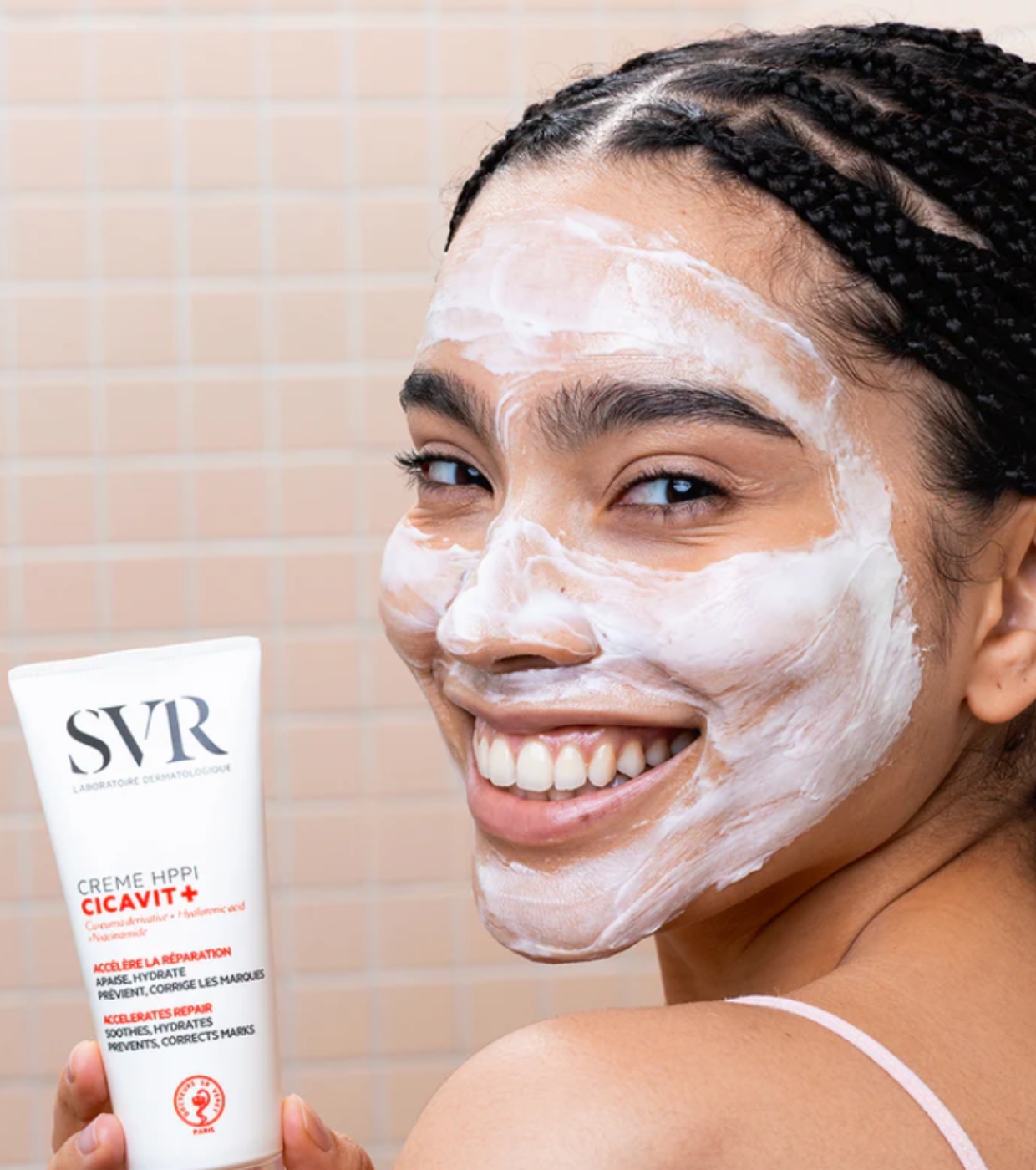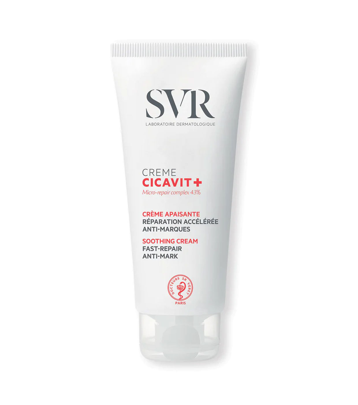 La Crema Cicavit+ de SVR se presenta como la solución definitiva para una variedad de problemas cutáneos, desde sequedad y enrojecimiento hasta marcas de varicela, tatuajes, procedimientos posdermatológicos como peeling y láser, inflamaciones, quemaduras solares, depilación y afeitado.