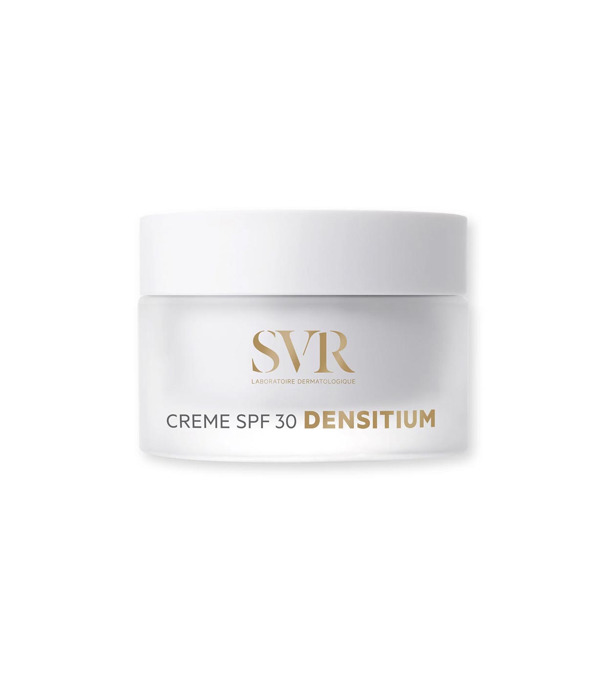 Densitium Creme SPF 30 de SVR ofrece una acción antiedad total con protección solar frente a los rayos UVB, UVA, IR y la luz visible (azul) responsables del fotoenvejecimiento y las manchas.