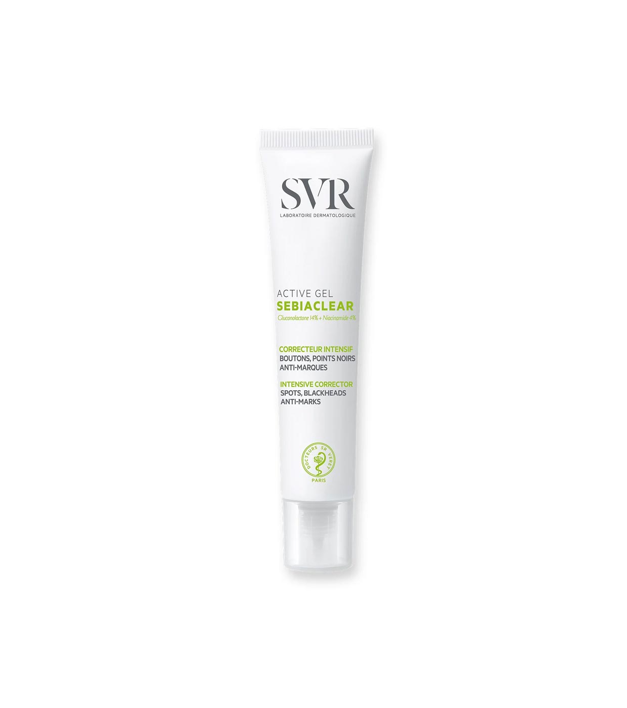 Sebiaclear Active Gel de SVR está altamente concentrado en activos dermatológicos para obtener resultados visibles en imperfecciones en siete días.