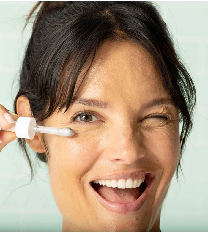 Por la mañana, extrae una pequeña cantidad de sérum en la pipeta y aplícatelo sobre la piel no irritada alrededor de los ojos y luego masajea con la punta de metal.