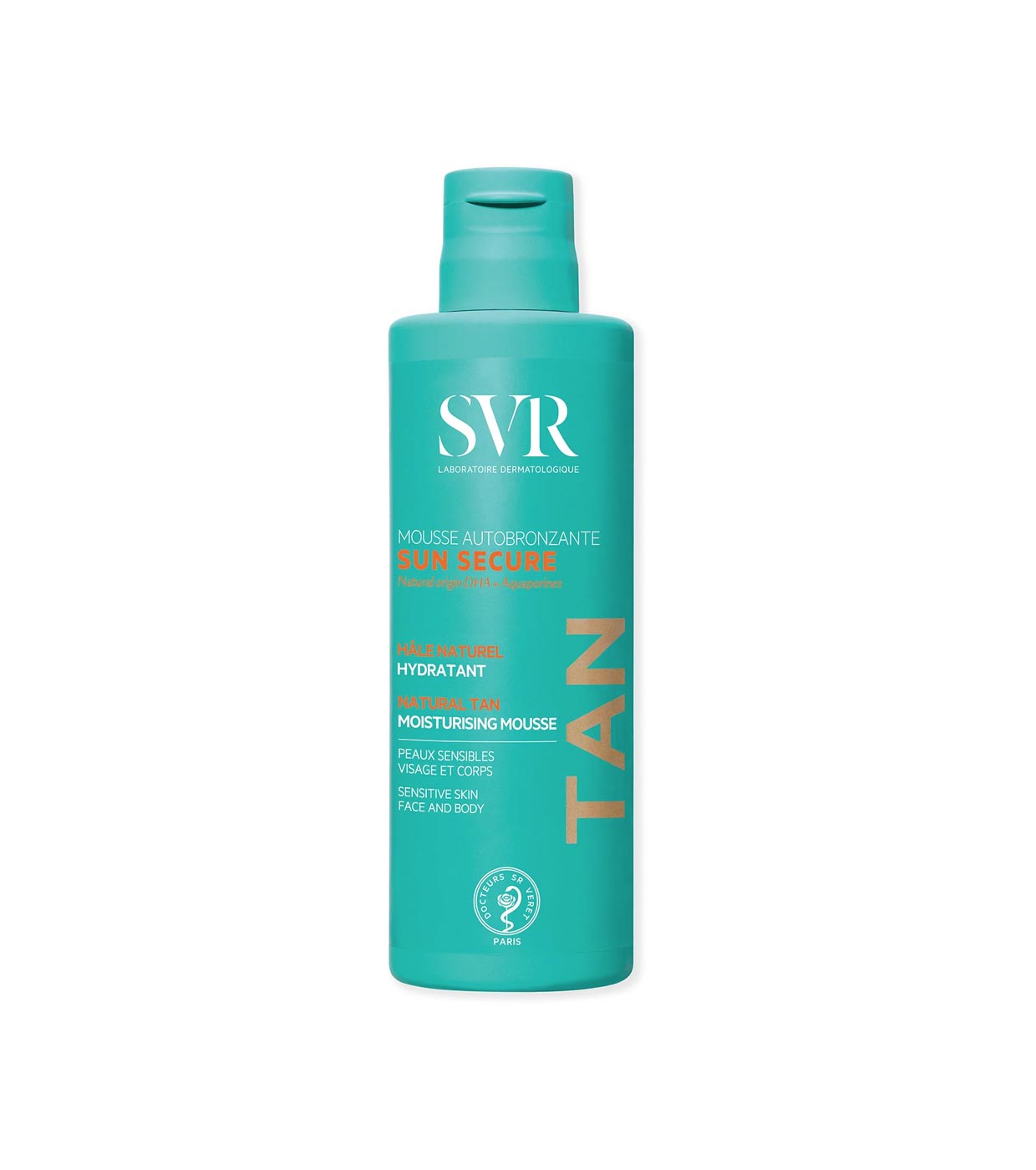 Mousse autobronceadora hidratante Sun Secure de SVR para un bronceado natural y una piel hidratada.