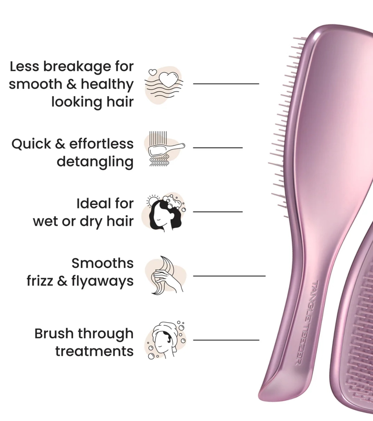 The Ultimate Detangler Chrome de Tangle Teezer combina el icónico cepillo desenredante con un acabado metálico elegante, perfecto para aportar estilo y eficacia a tu rutina capilar.