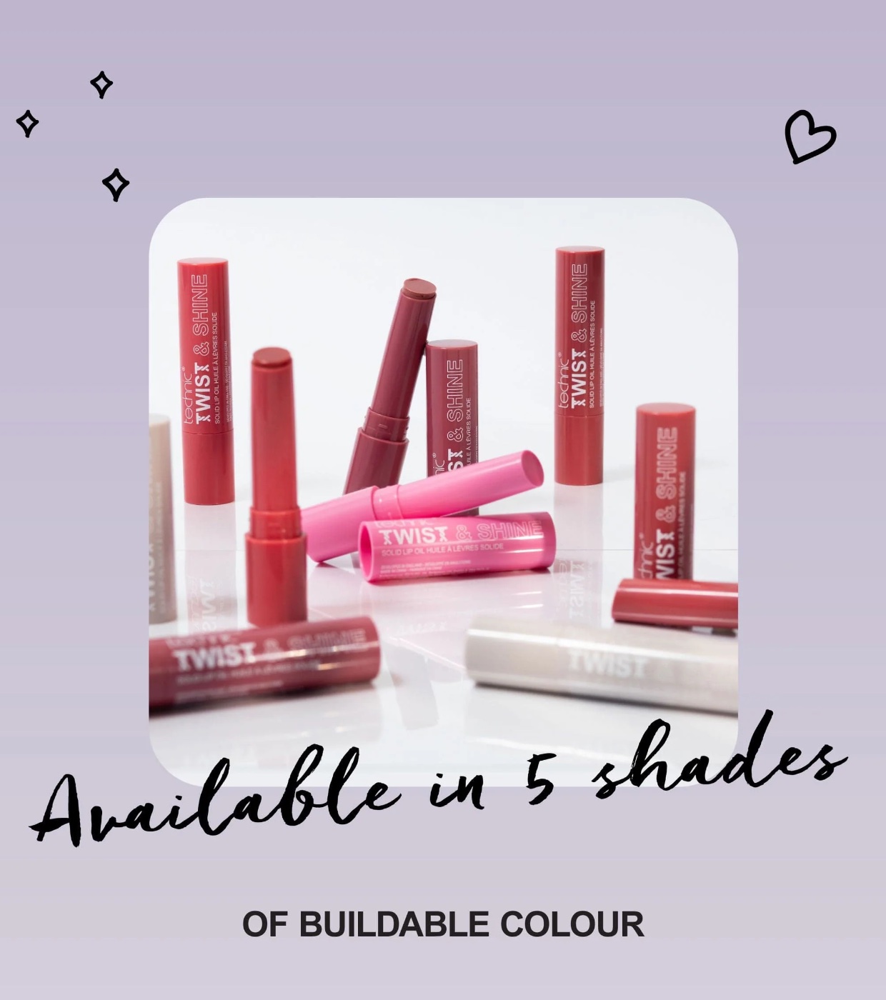 ¡Labios brillantes e hidratados en un solo clic! El aceite labial sólido con color de Technic Cosmetics es un práctico producto híbrido que combina las propiedades nutritivas del bálsamo labial con las cualidades hidratantes del aceite labial.