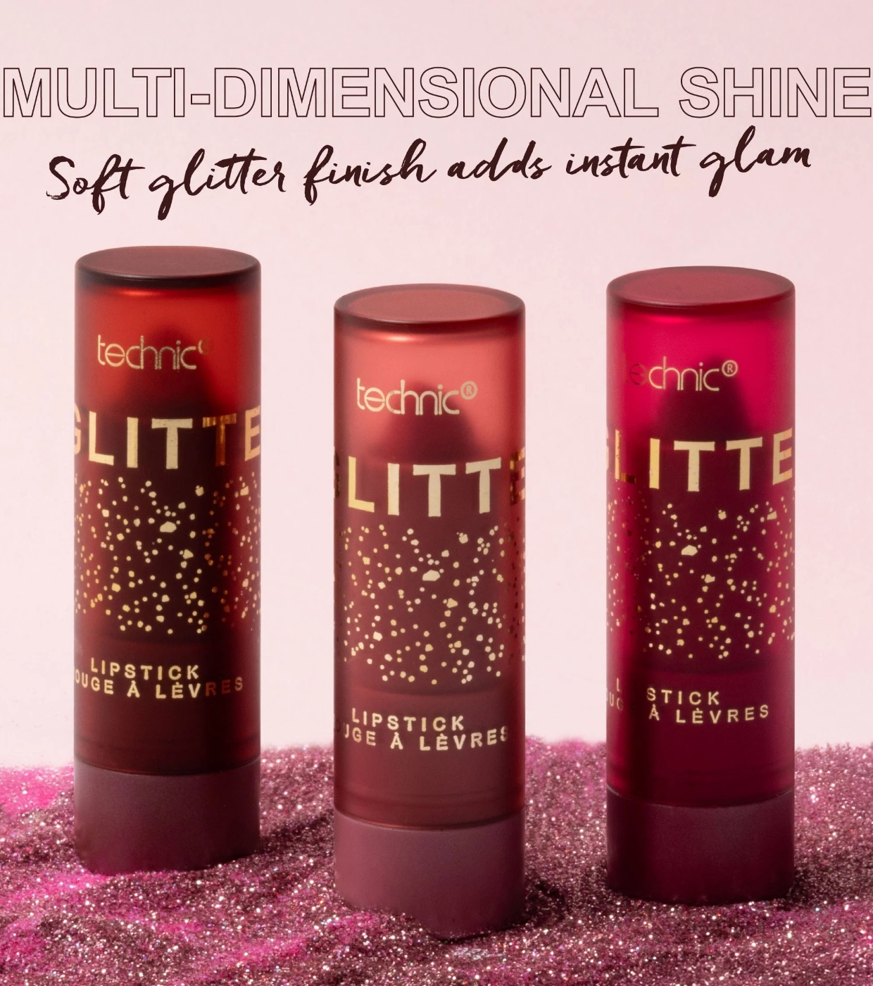 Altamente pigmentado y con un brillo sutil y sofisticado, Glitter Lips de Technic Cosmetics realza cualquier look con un acabado luminoso y glamuroso.