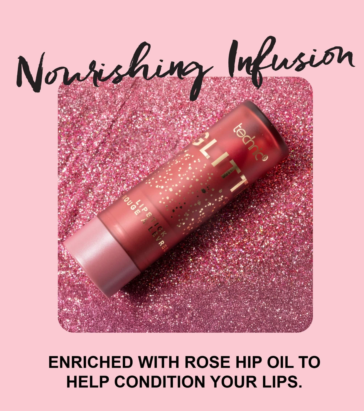 Altamente pigmentado y con un brillo sutil y sofisticado, Glitter Lips de Technic Cosmetics realza cualquier look con un acabado luminoso y glamuroso.