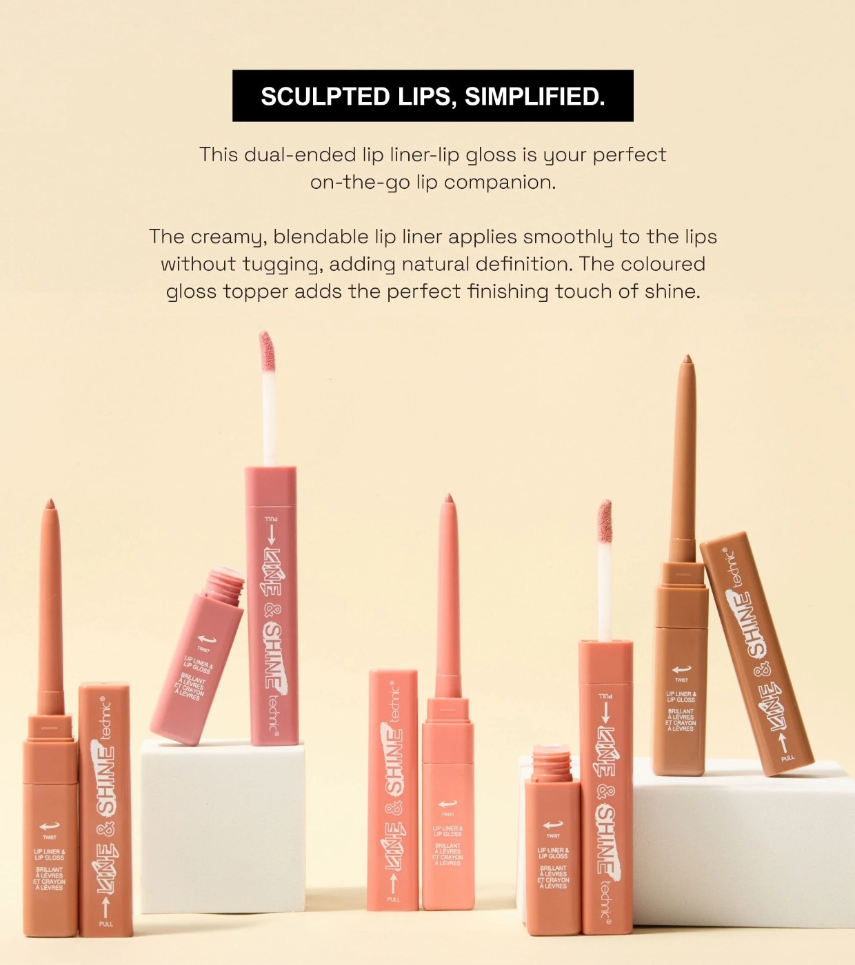 Luce unos labios perfectamente esculpidos y radiantes con este práctico dúo 2 en 1 de delineador y brillo labial de Technic Cosmetics, diseñado para acompañarte a todas partes.