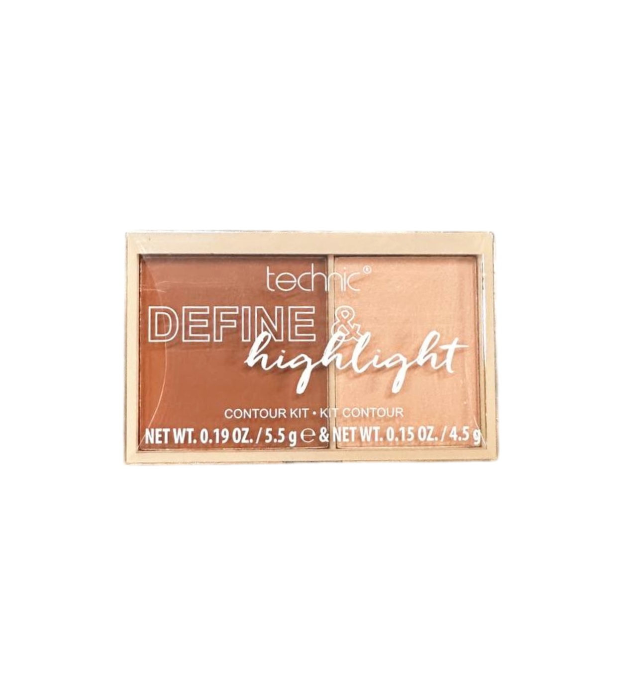 Contiene dos productos: Un polvo de contorno para crear sombras y un polvo iluminador para crear puntos de luz.