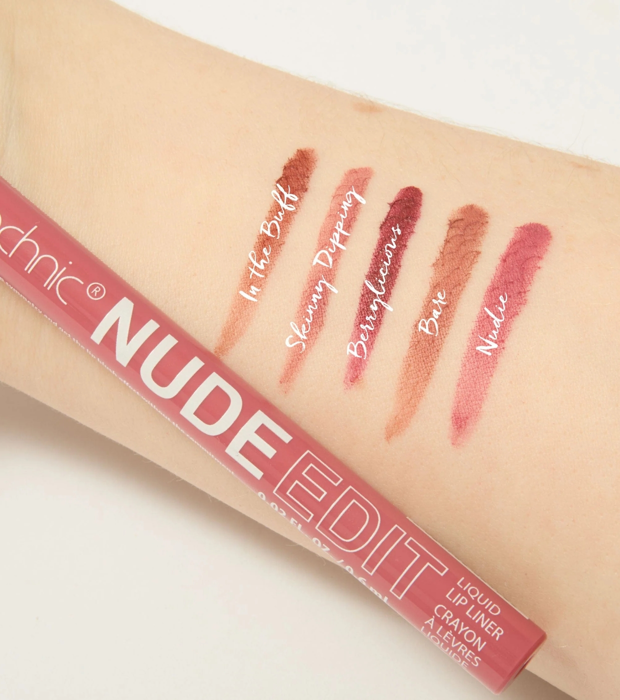 Utiliza el lápiz de labios líquido Nude Edit de Technic Cosmetics de alta pigmentación y resistente al agua para añadir un toque de color y definición a tus labios.