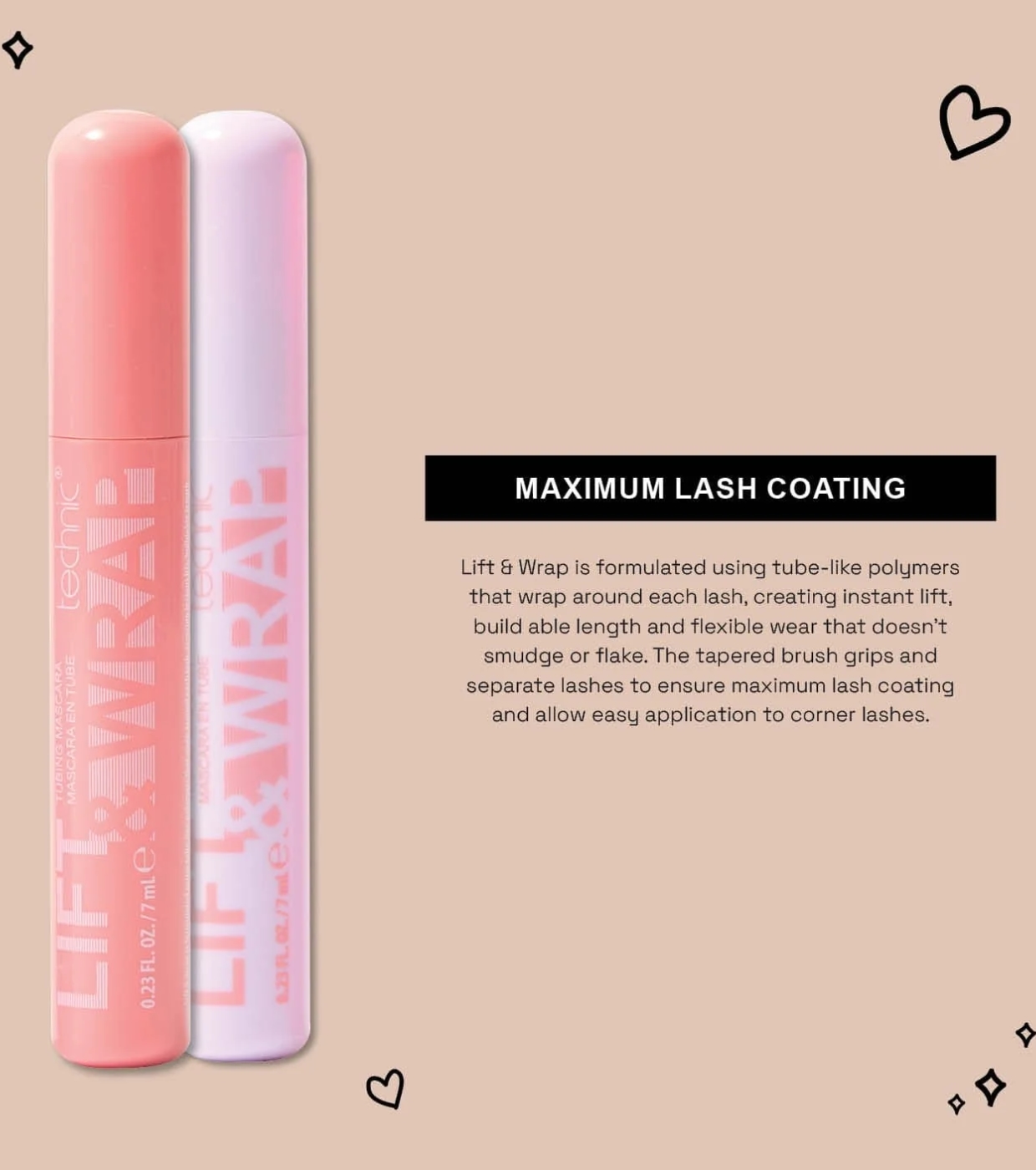 Descubre la magia de la Máscara de Pestañas Lift & Wrap de Technic Cosmetics, la fórmula innovadora que envuelve cada pestaña con polímeros en forma de tubo, ofreciendo una elevación instantánea, longitud modulable y un uso flexible que no se corre ni se descascara.