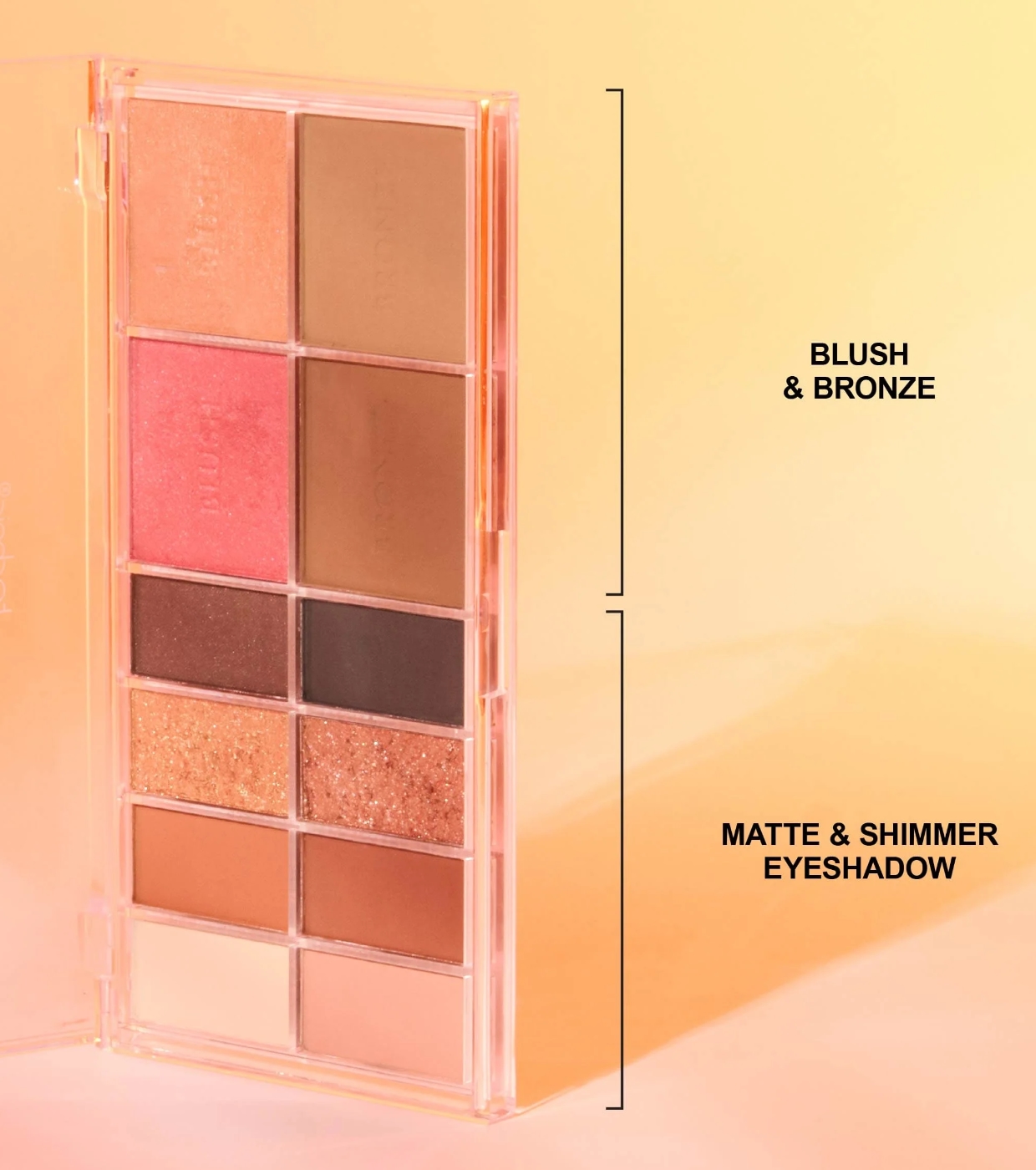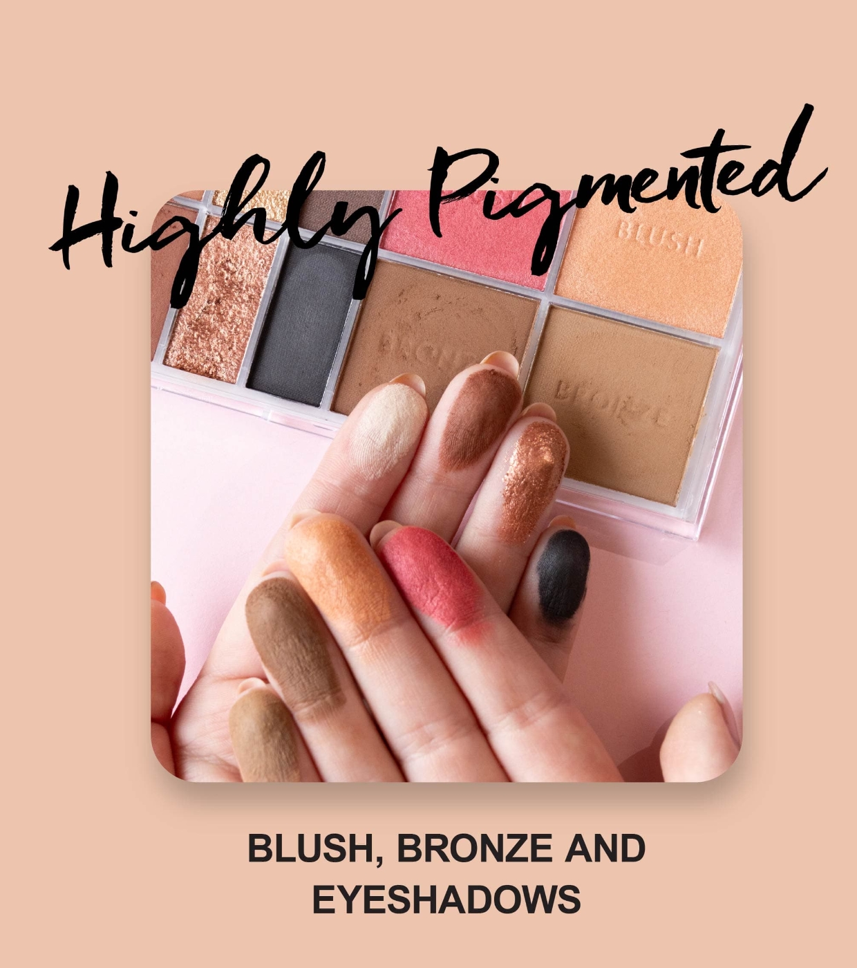 Sarano me ha gustado porque la compré principalmente por el colorete rosita y resulta que es bastante oscuro y no me gusta cómo se ve, ya que parece no tener mucha base de color y queda como holográfico, es un color más borgoña que rosa. Por lo demás, es completa y compacta.