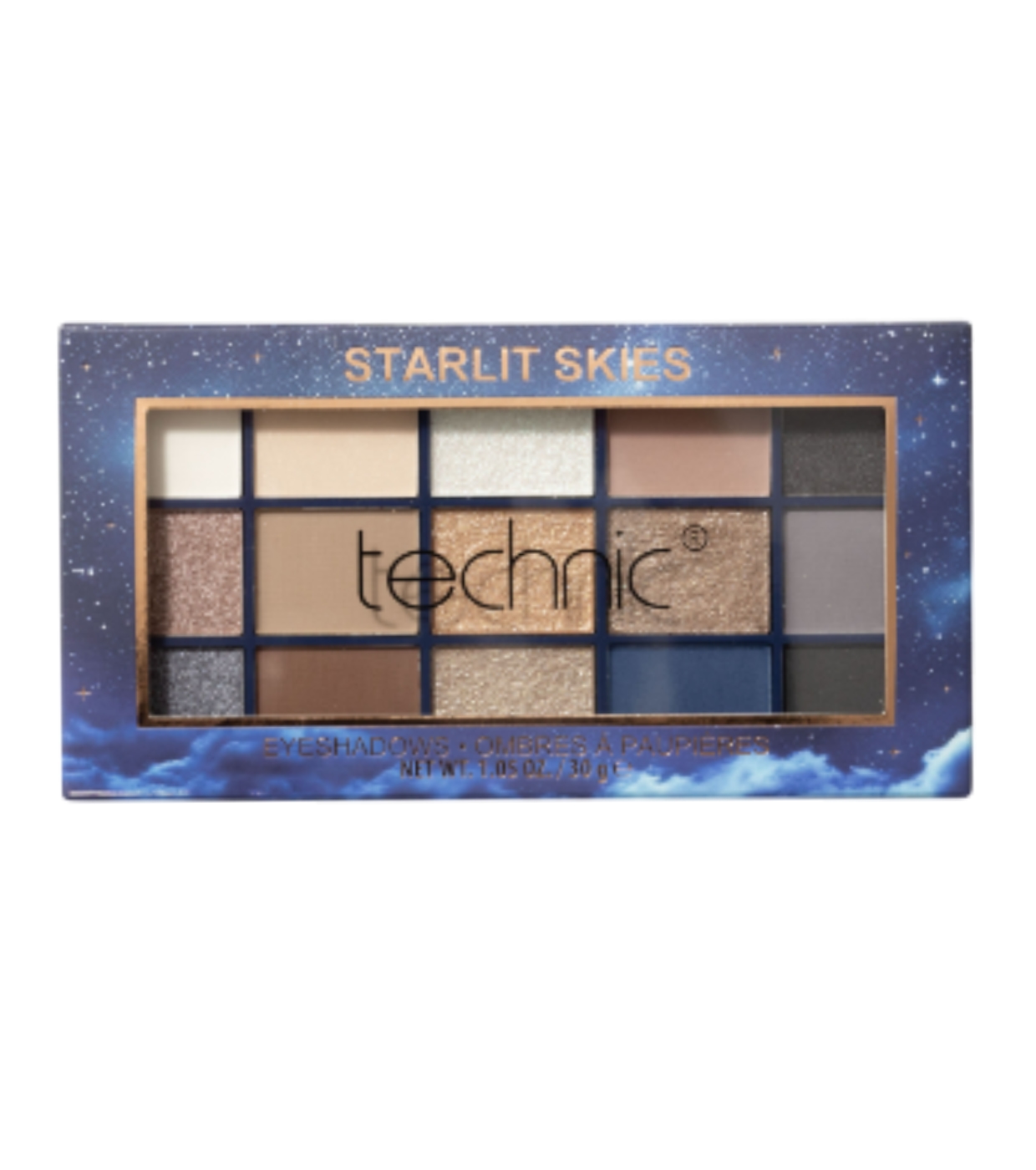 Brilla como las estrellas con la paleta de sombras de ojos Technic Starlit Skies, una selección de 15 tonos versátiles inspirados en los cielos nocturnos iluminados.