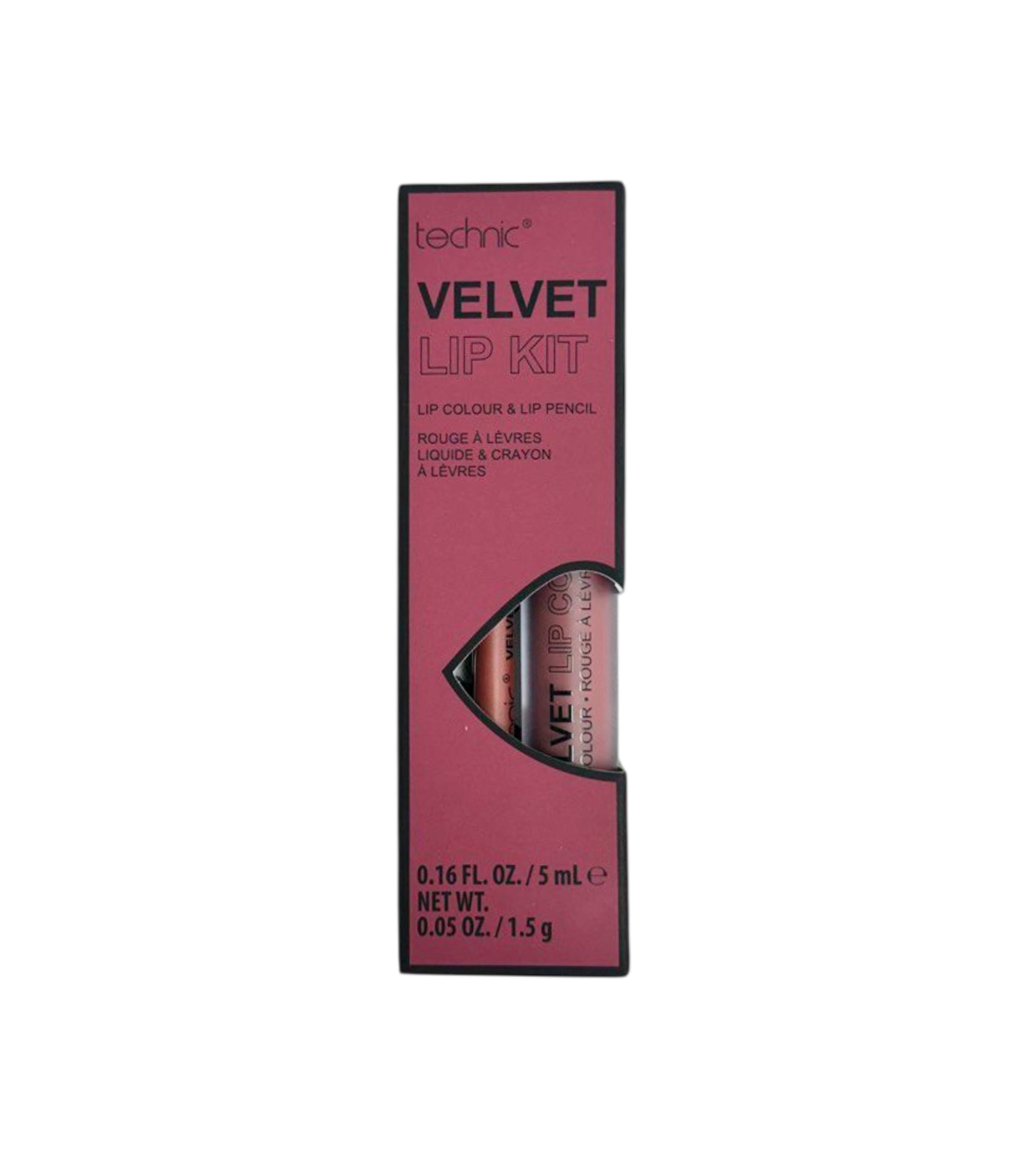 El Velvet Lip Kit de Technic Cosmetics es un set completo para labios que combina labial líquido y perfilador a juego, diseñado para conseguir un acabado mate aterciopelado, definido y duradero.
