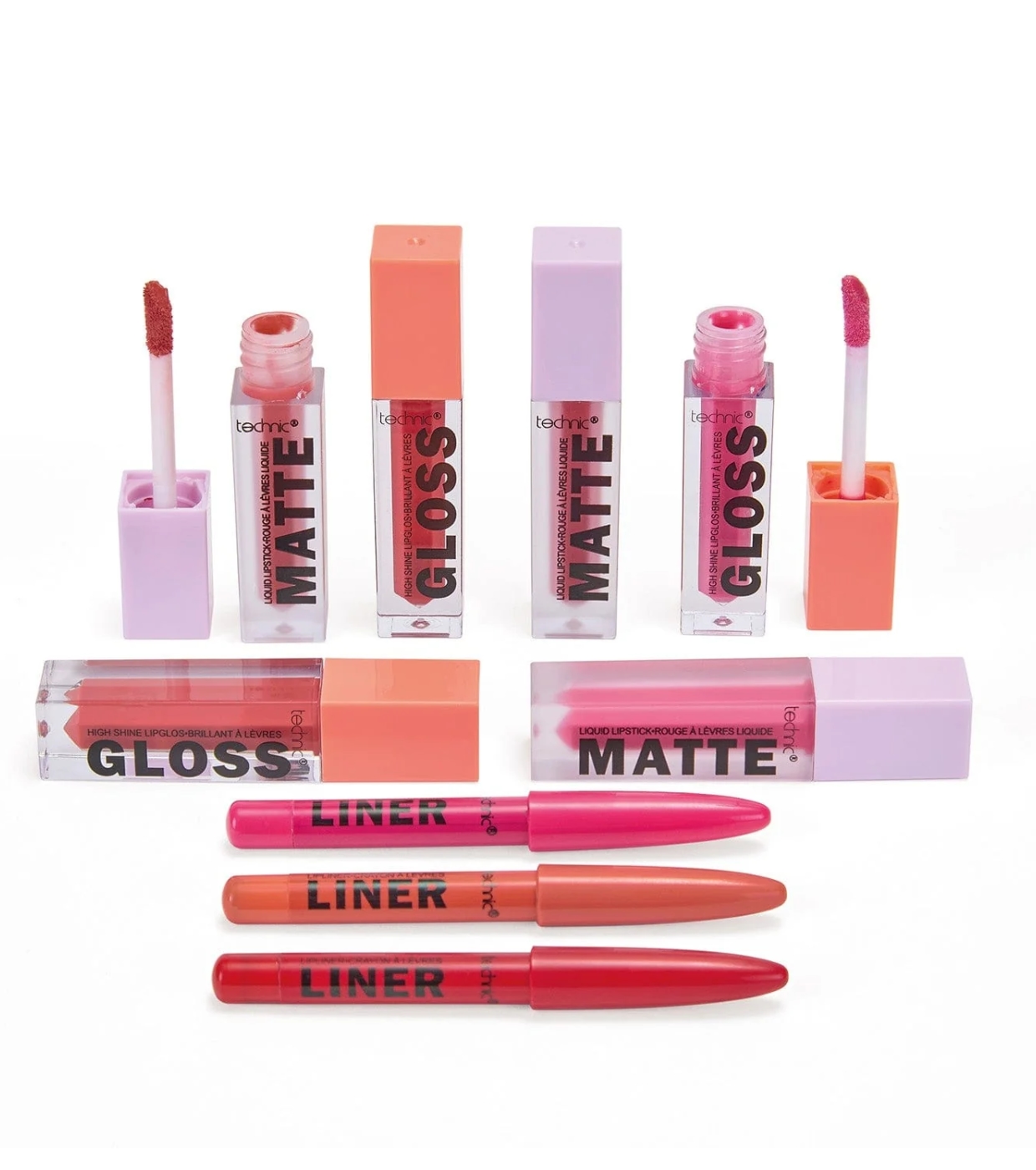 ¡La combinación perfecta de color y cuidado para tus labios! Este exclusivo set de perfiladores + labiales Lip Vault de Technic de 9 piezas reúne todo lo que necesitas para crear looks versátiles, desde un acabado mate sofisticado hasta un brillo jugoso y radiante.