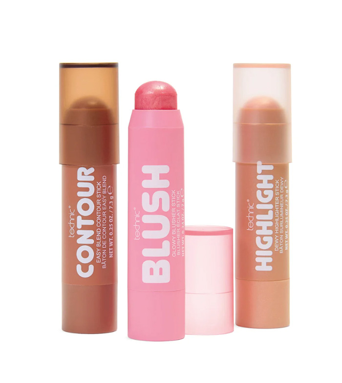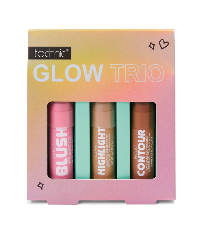Luce una piel radiante y perfectamente definida con el set para rostro Glow Trio de Technic, compuesto por un colorete glow modulable, un iluminador en crema de fácil aplicación y un contour stick de textura ultra cremosa.