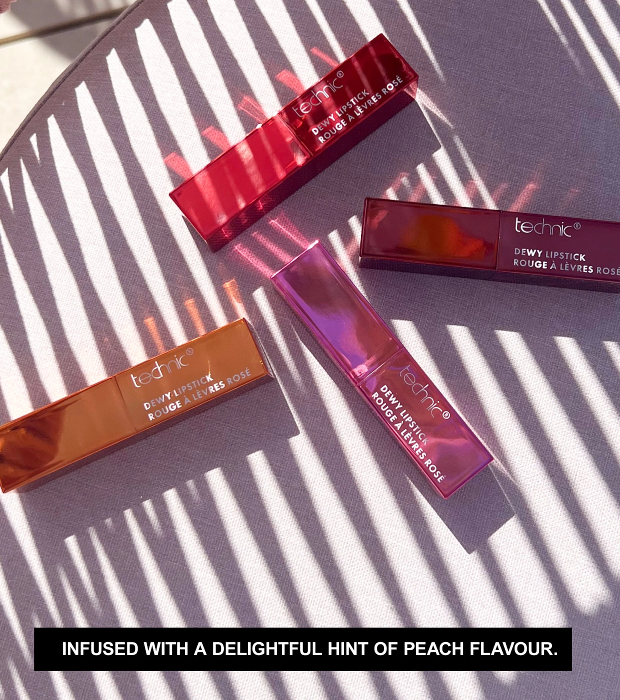 Descubre las innovadoras barras de labios Sundrenched Dewy Lipstick de Technic Cosmetics con efecto de rocío, que combinan una perfecta mezcla de hidratación y color para tus labios.