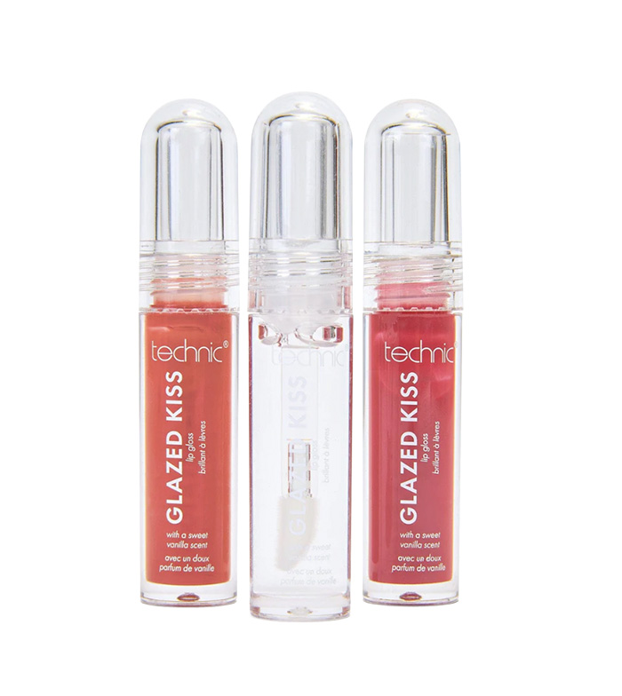 Logra unos labios deslumbrantes con el trío de brillos de labios Glazed Kiss de Technic Cosmetics de alto brillo y pigmentación intensa.