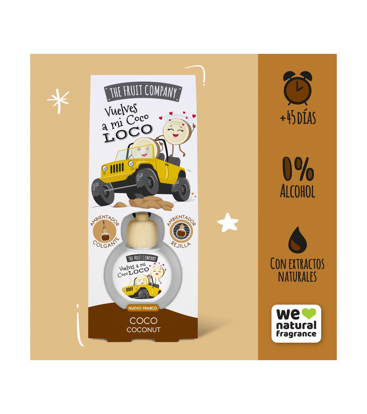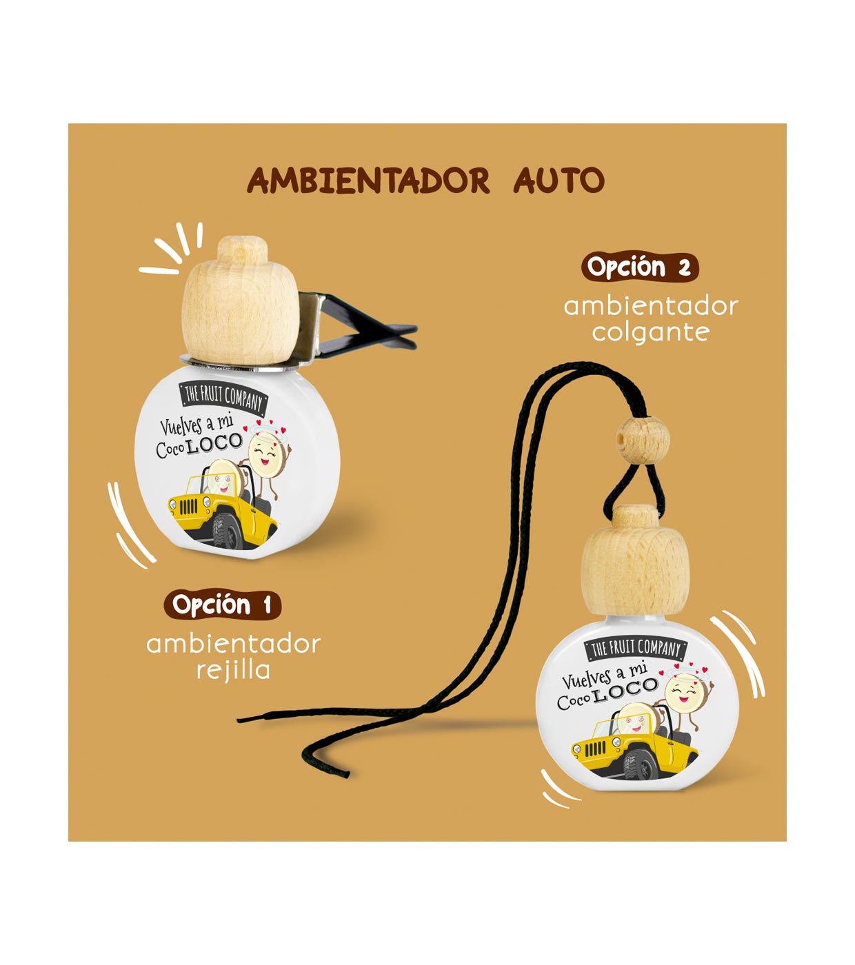Ambientador para coche con un delicioso aroma a coco.