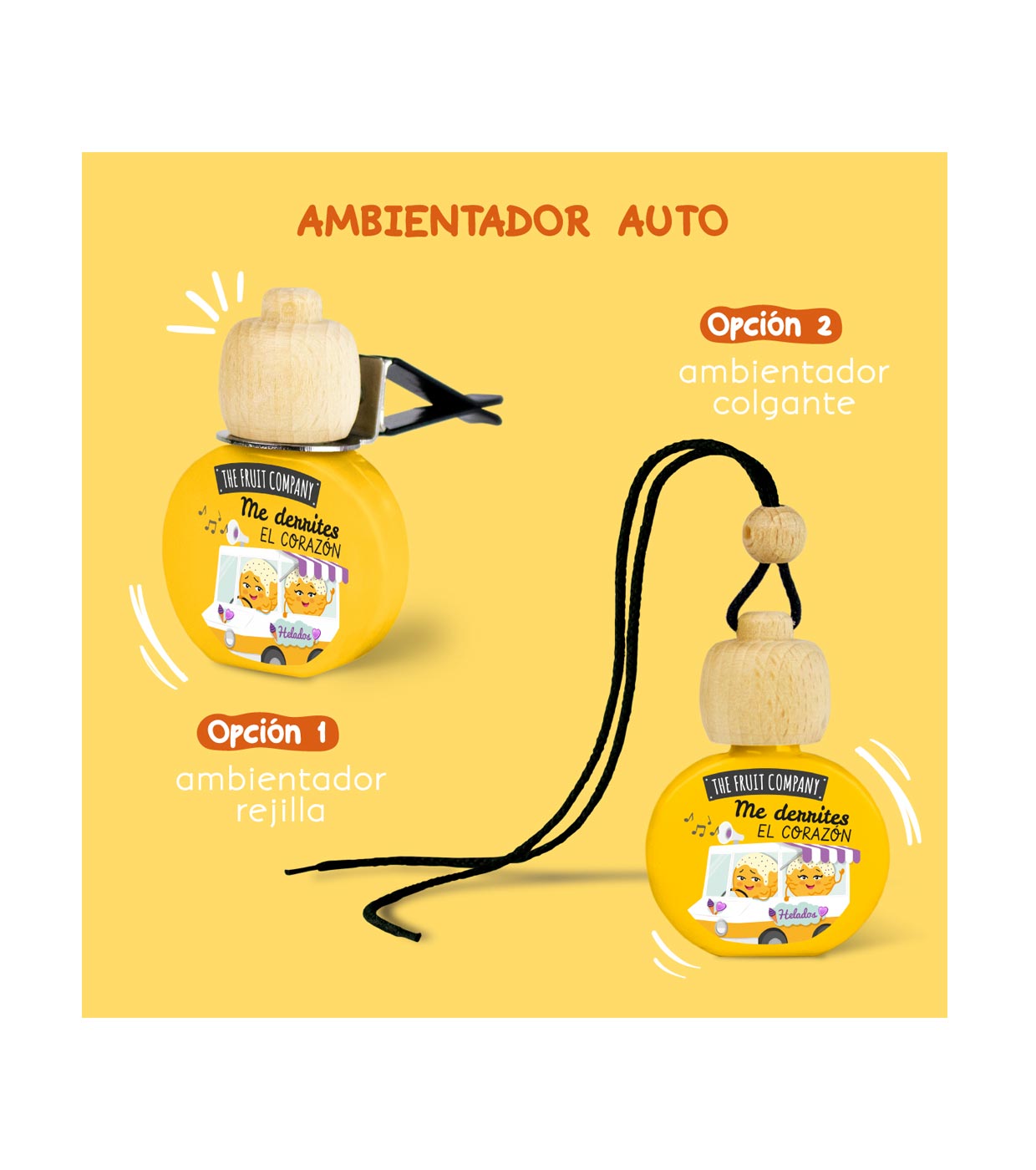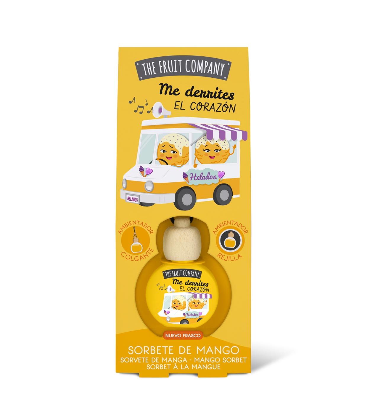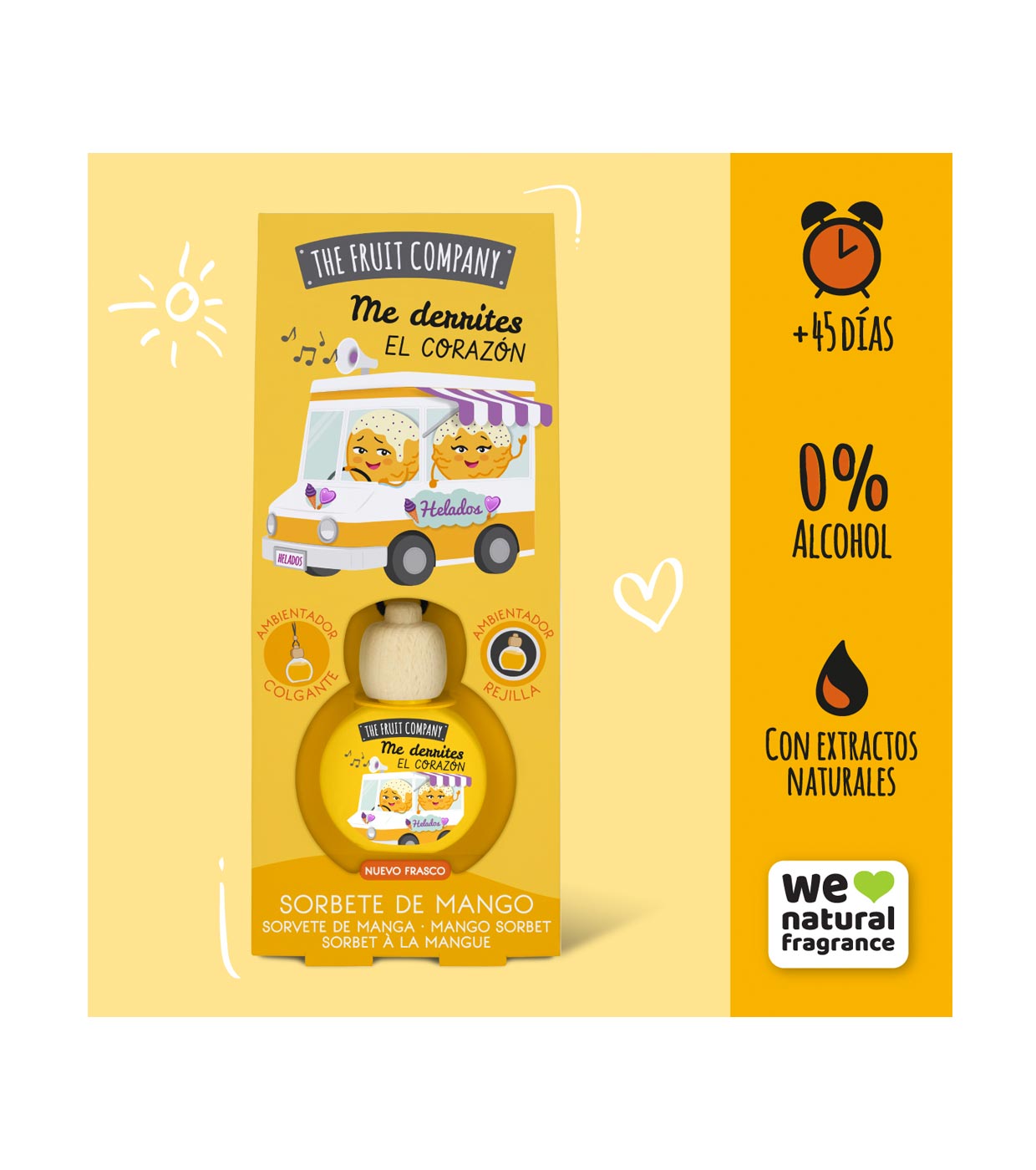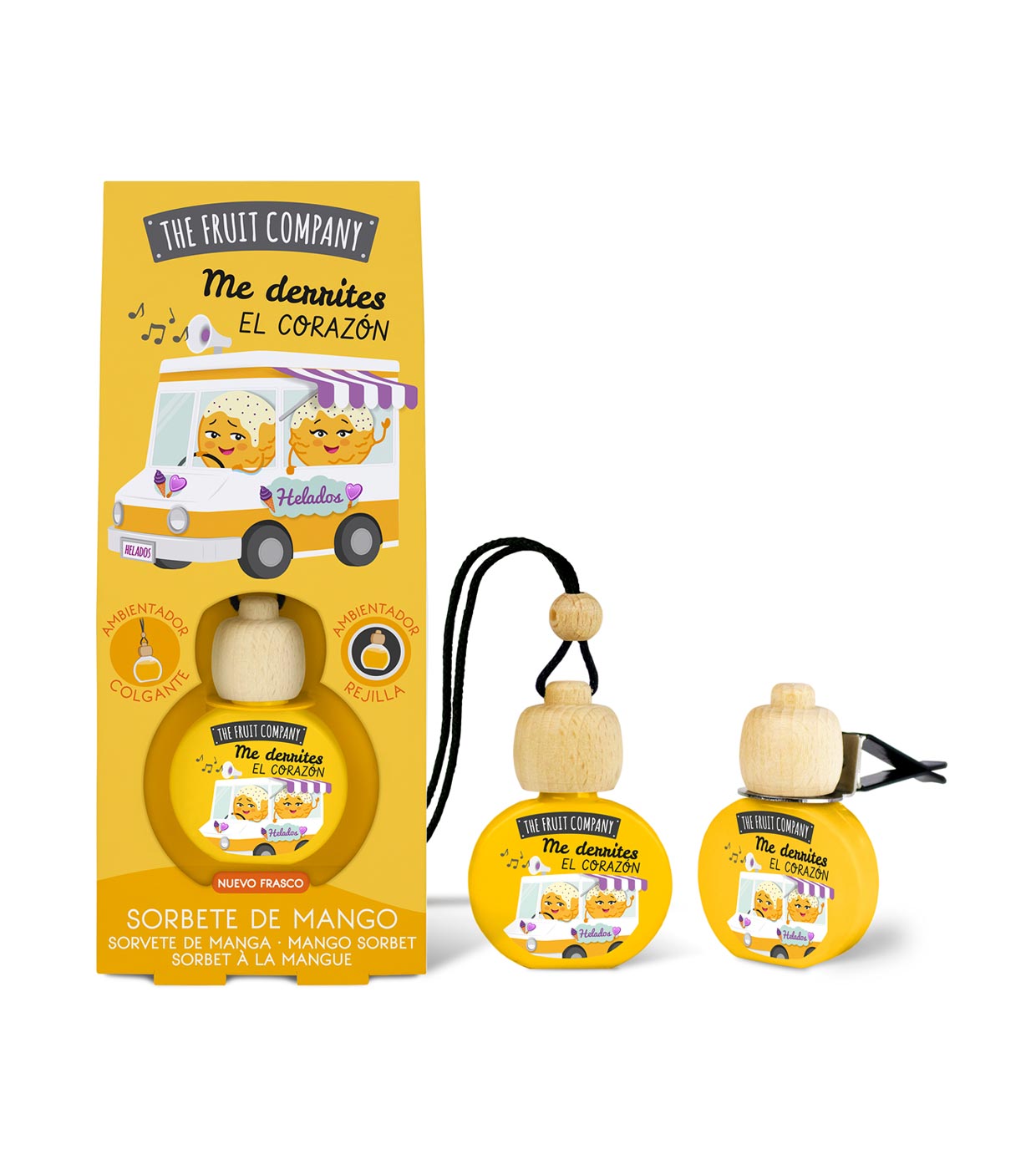 Ambientador para coche con un delicioso aroma a sorbete de mango.