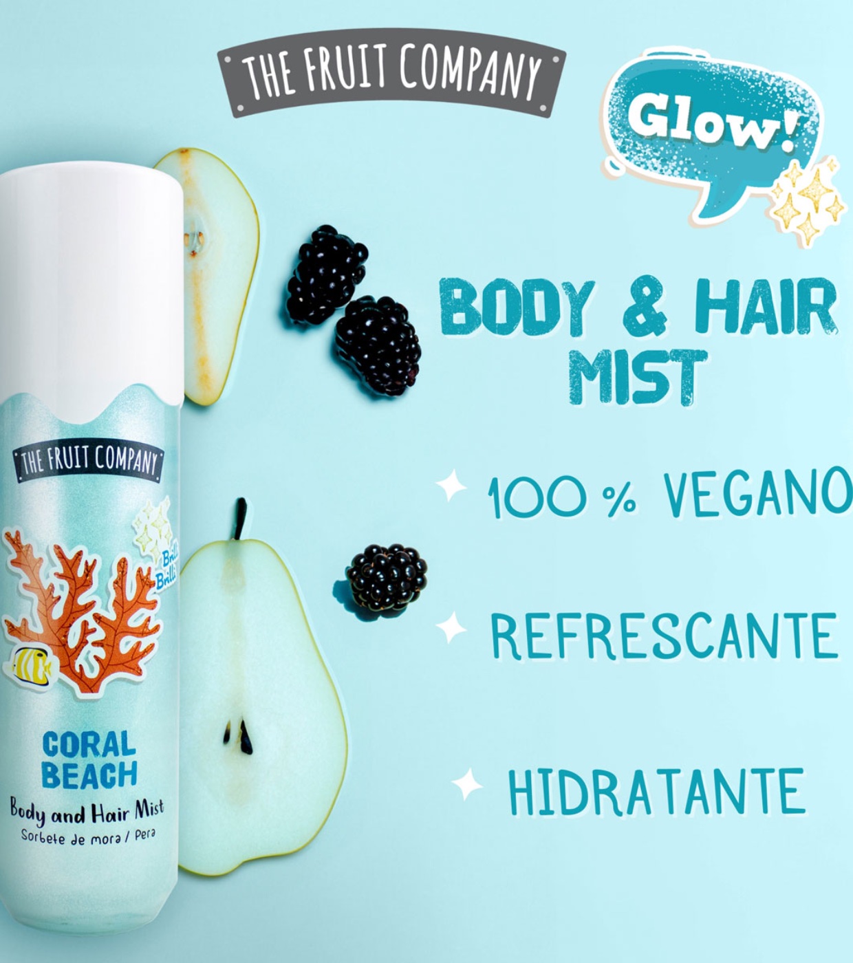 Descubre el nuevo Hair & Body Mist Coral Beach de The Fruit Company, una irresistible mezcla de frescura y luminosidad para tu piel.