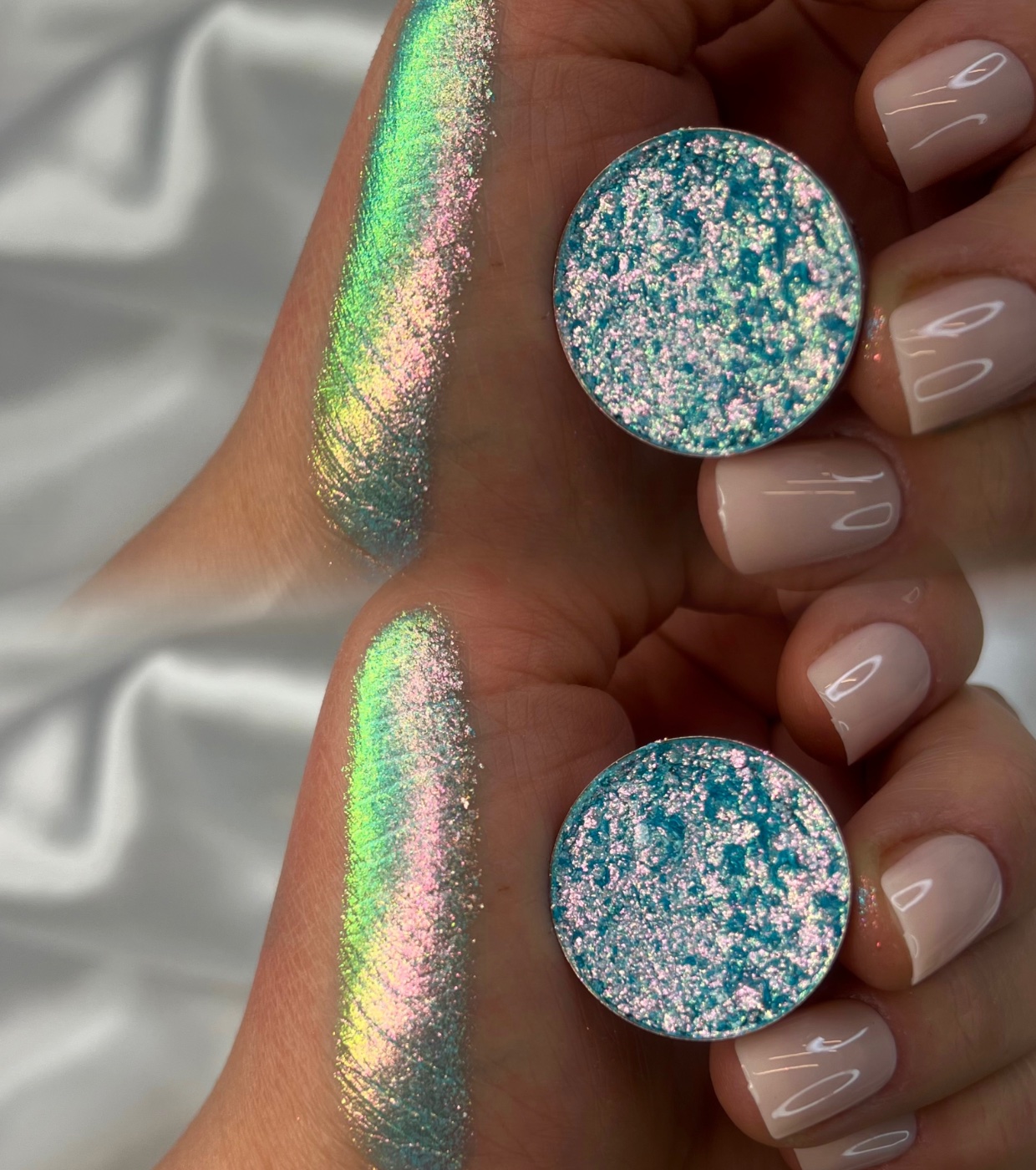 Las sombras de ojos individuales multicromos de The Pastel Roses ofrece un acabado espectacular que cambia de color según el ángulo de la luz.