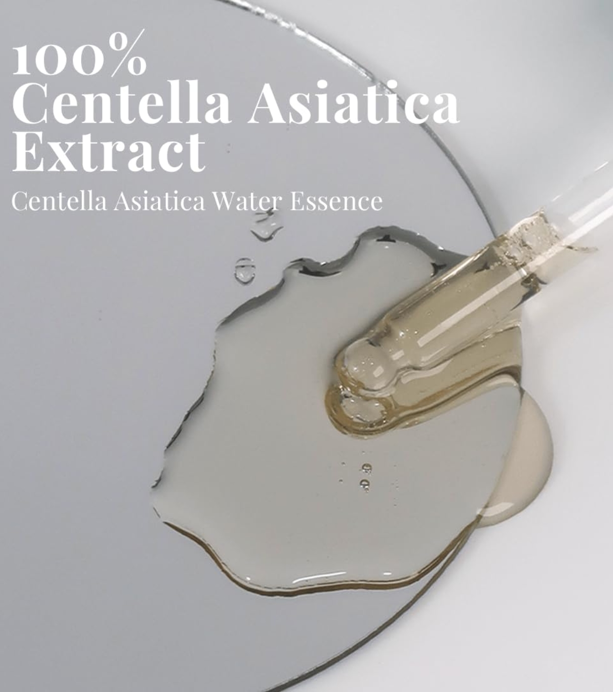 Una esencia acuosa formulada con extracto 100% de centella asiática, también conocida como "hierba de tigre" para calmar e hidratar la piel.
