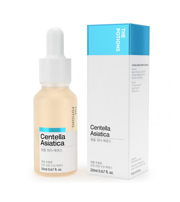 Una esencia acuosa formulada con extracto 100% de centella asiática, también conocida como "hierba de tigre" para calmar e hidratar la piel.
