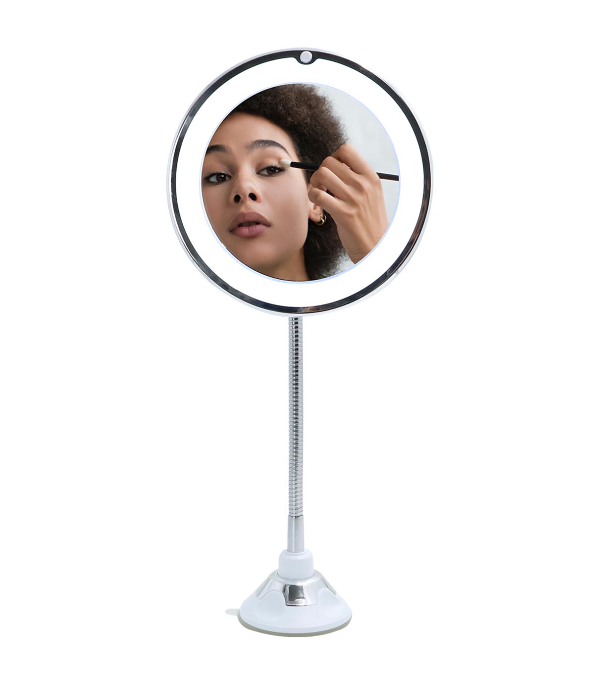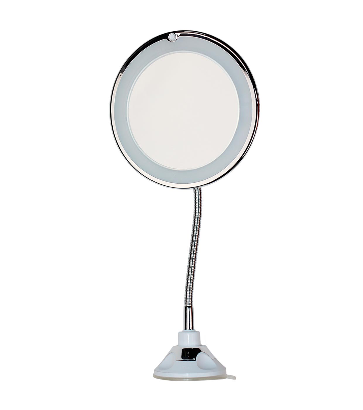 Este espejo con iluminación te permite visualizar desde cualquier ángulo gracias a su aumento 10x y rotación 360°.