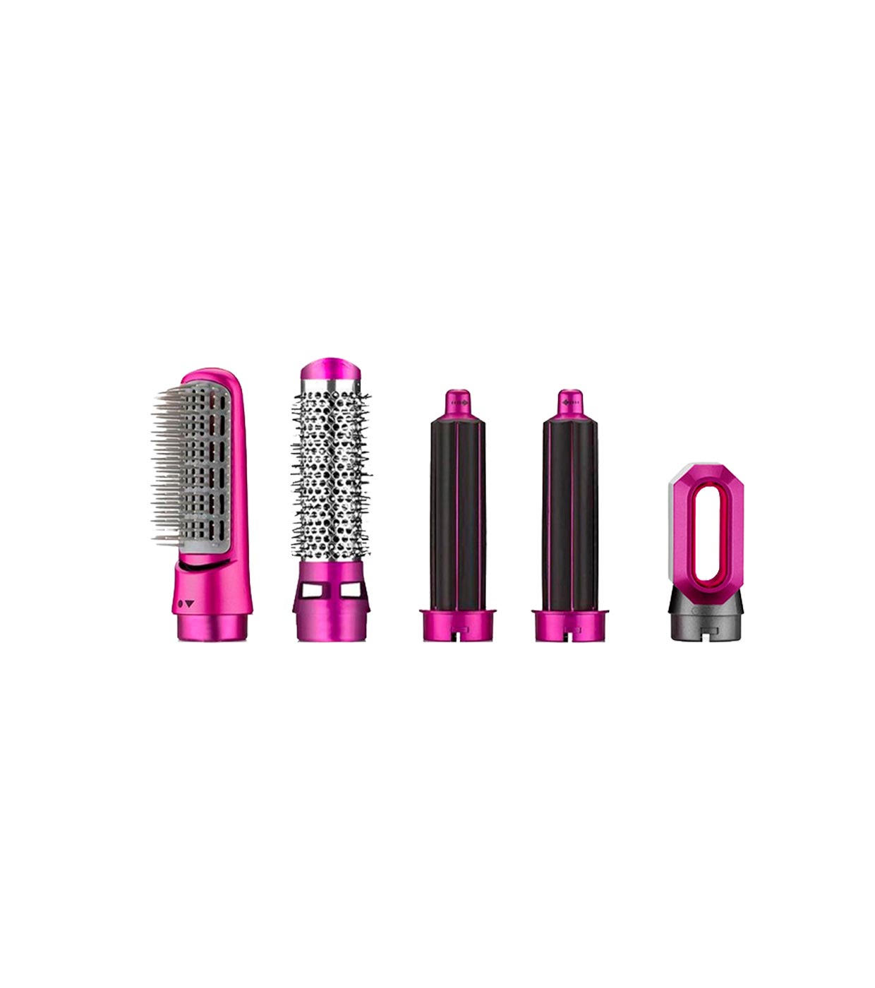 Incluye 5 cabezales intercambiables: Rizador giratorio, secador, cepillo redondo y cepillo plano.