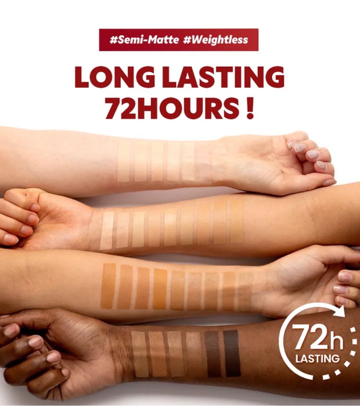 • Cobertura y Duración Inigualables: Disfruta de un rostro impecable durante hasta 72 horas gracias a su fórmula de larga duración, ideal para quienes buscan una base confiable y sin retoques frecuentes.