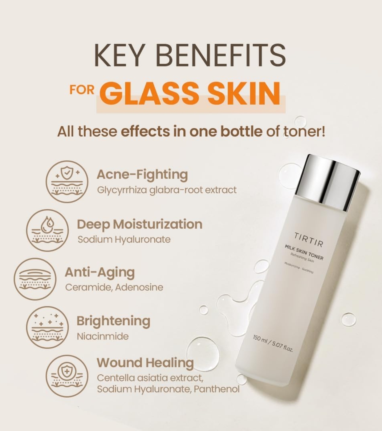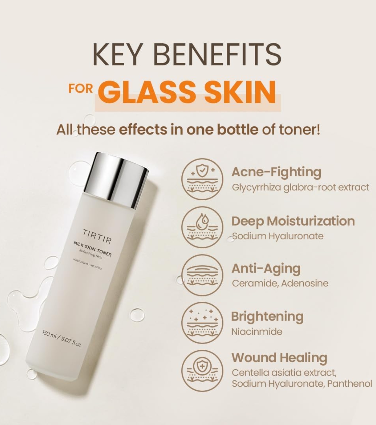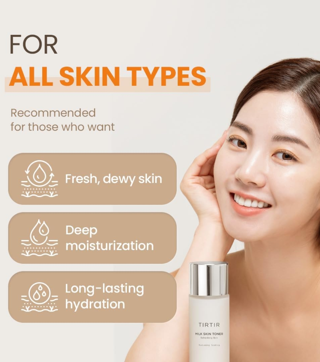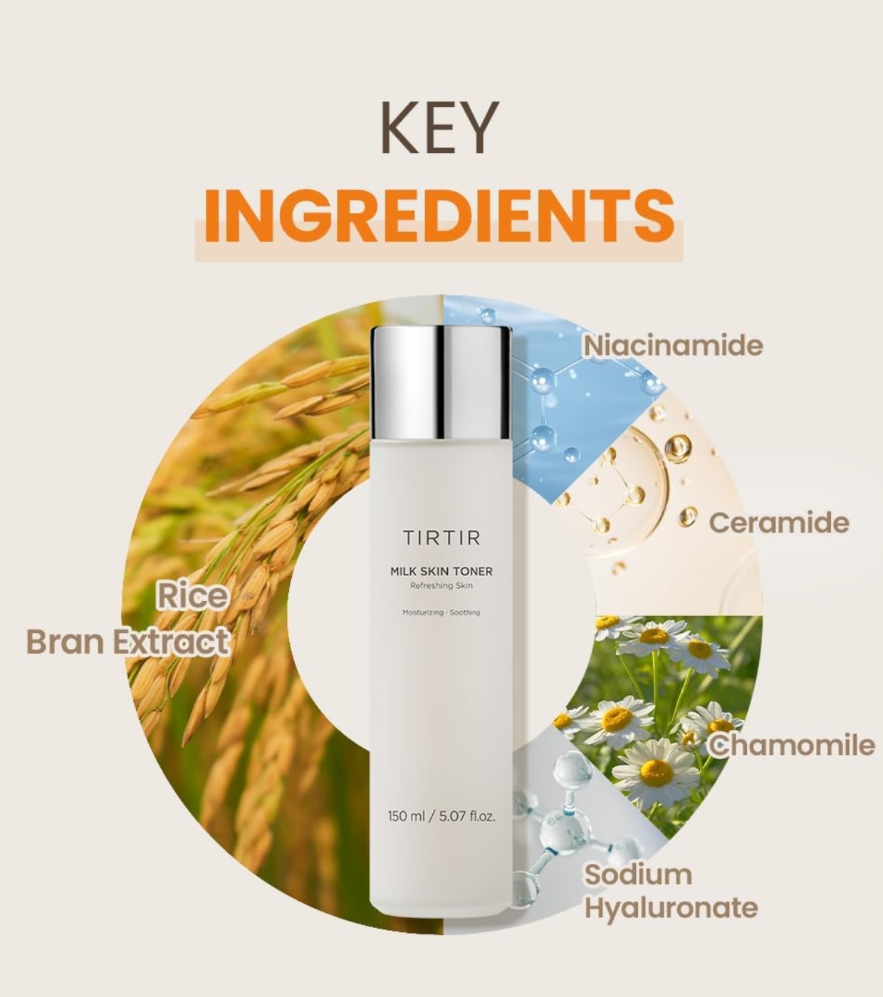 Hidrata, calma e ilumina tu piel con el tónico facial Milk Toner de TIRTIR de alta concentración, diseñado para proporcionar una hidratación profunda y duradera mientras equilibra y revitaliza la piel.