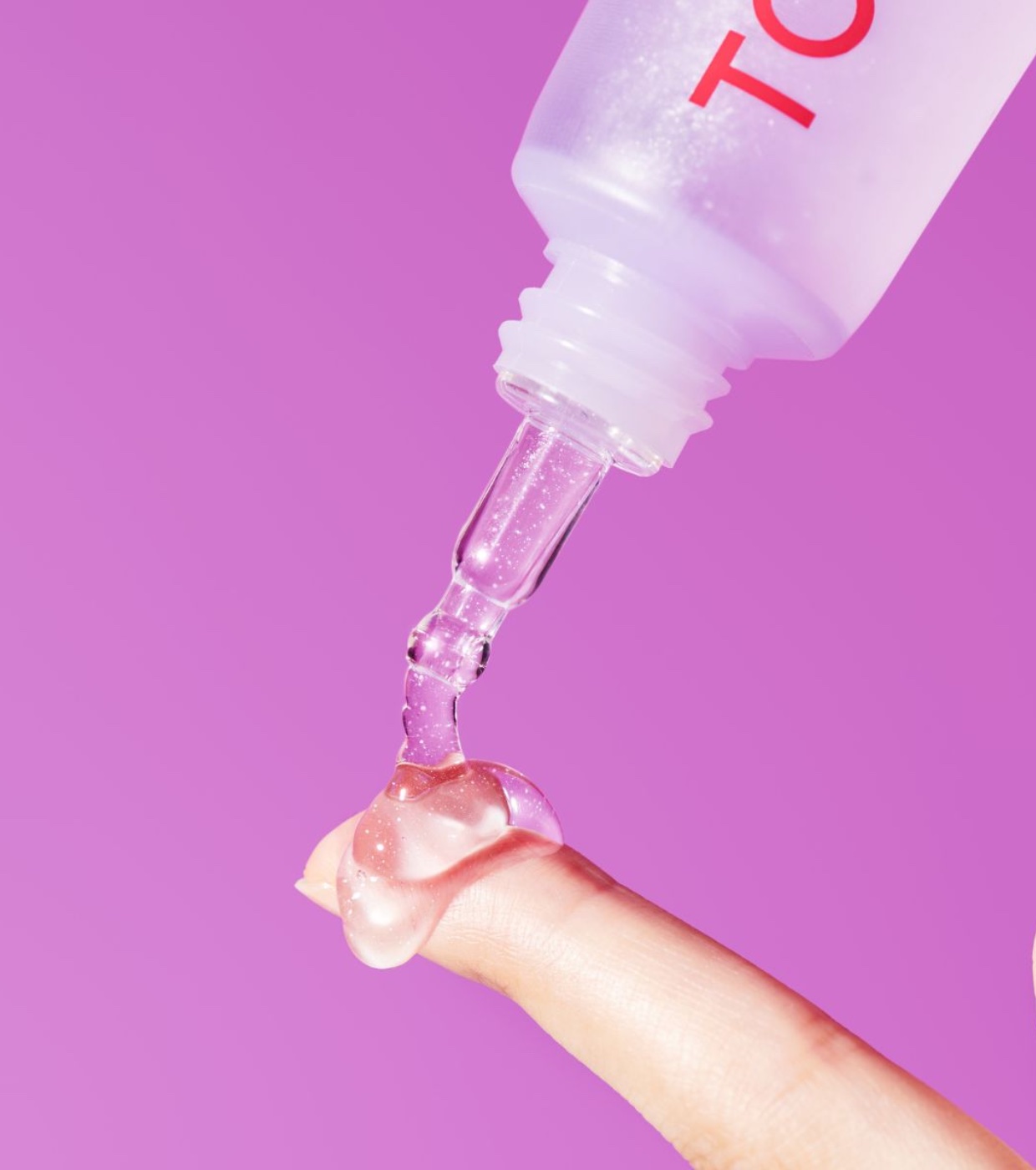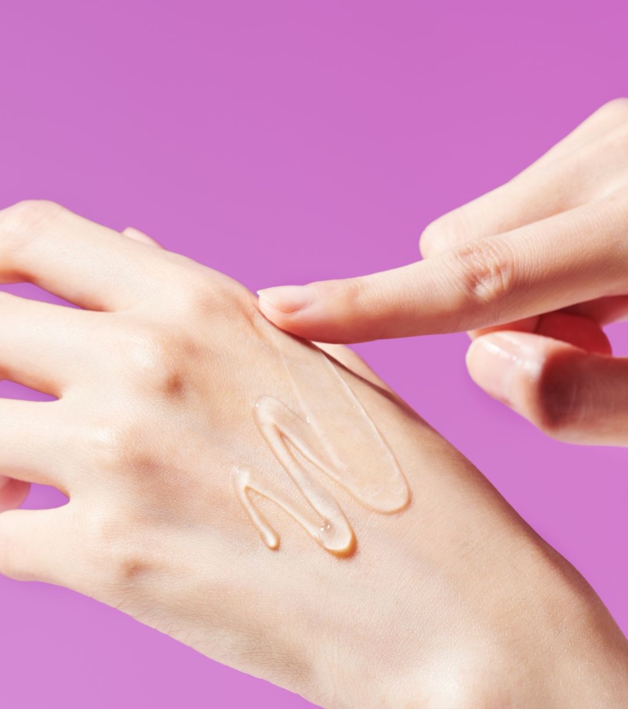 Aplica la cantidad equivalente a un grano de arroz en tu dedo anular y úsalo para esparcir el producto en el contorno de ojos, sobre el huesito, y deja que se absorba.