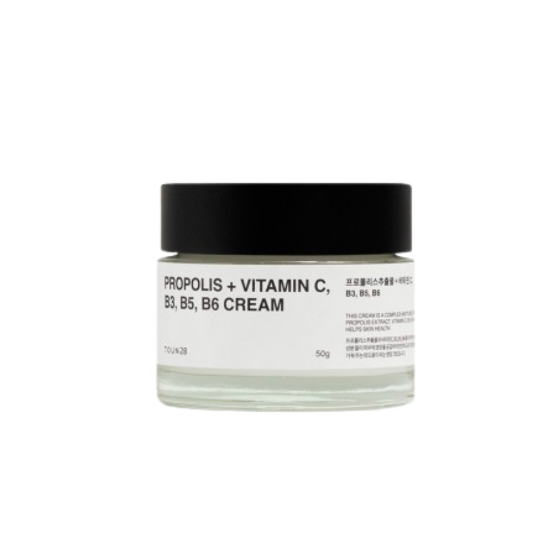 La Propolis Vitamin C, B3, B5, B6 Cream de Toun28 es una crema facial multivitamínica que combina propóleo y un complejo de vitaminas esenciales para revitalizar, hidratar y proteger la piel.