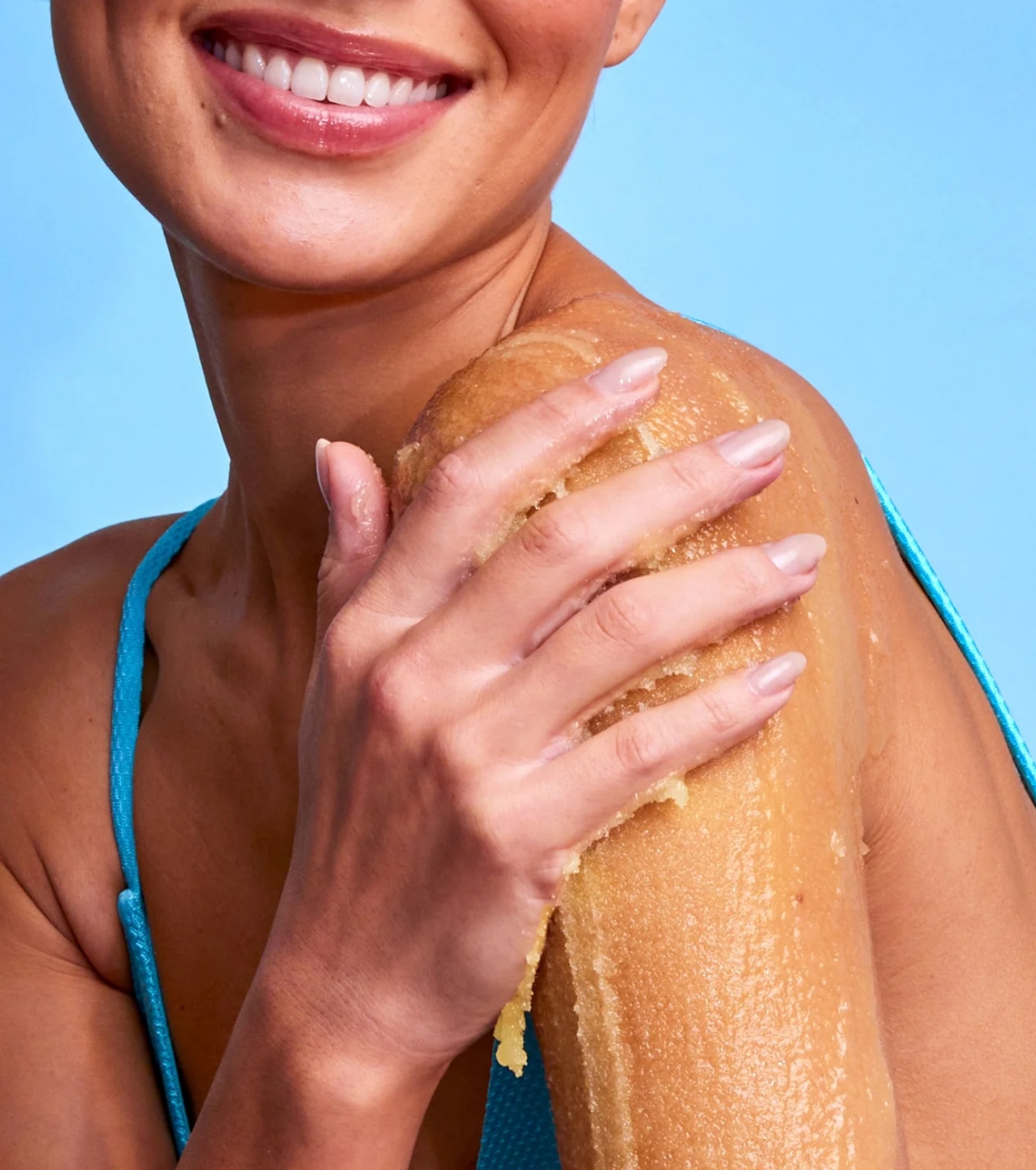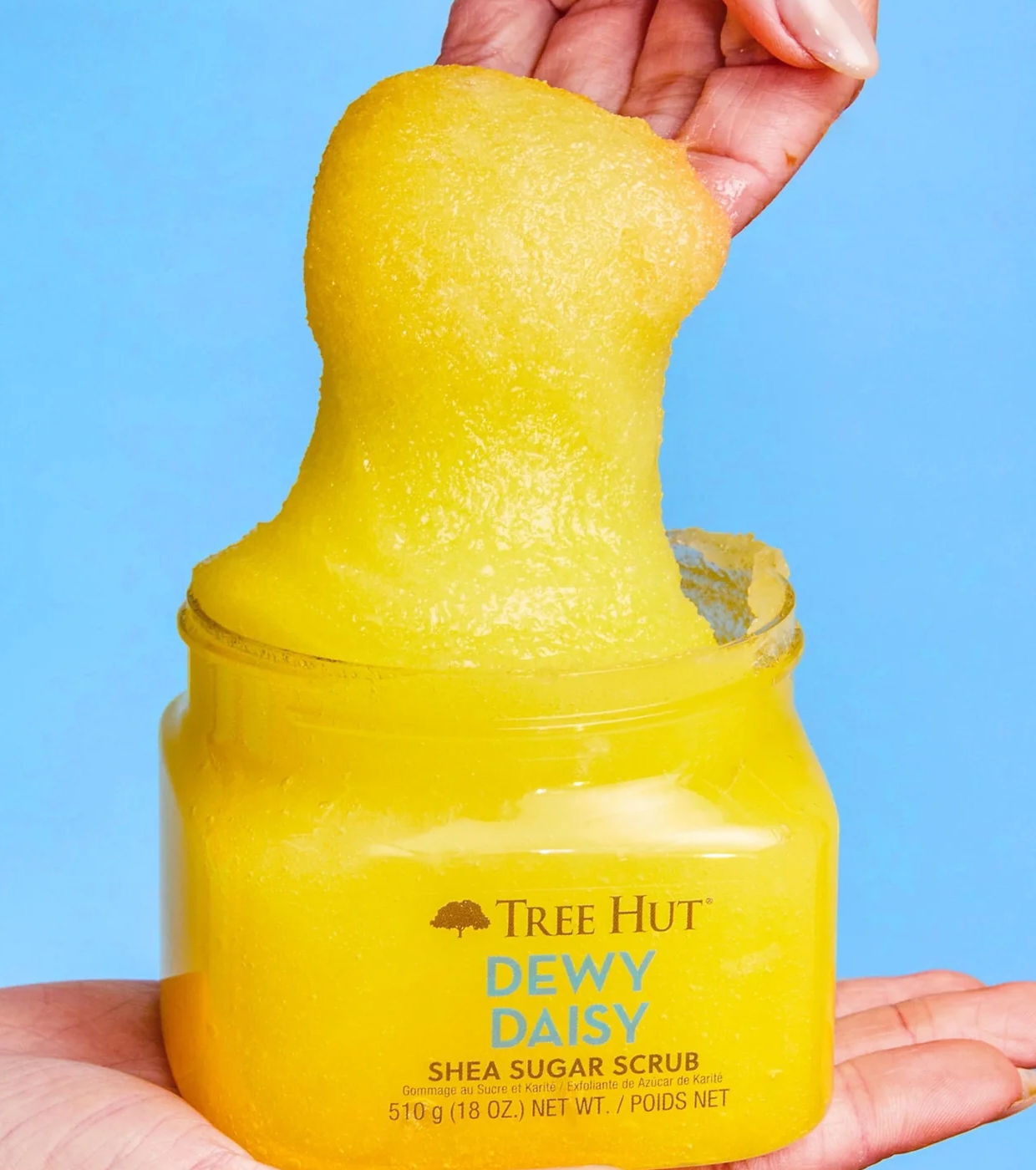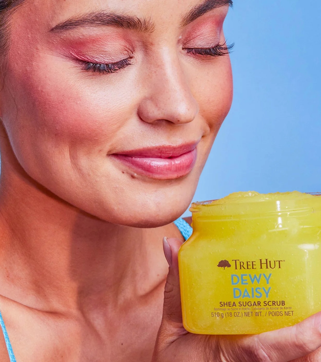 Descubre el exfoliante corporal Shea Sugar Scrub de Tree Hut, que ayuda a eliminar las células muertas de la piel, ofreciendo una sensación de limpieza y suavidad.