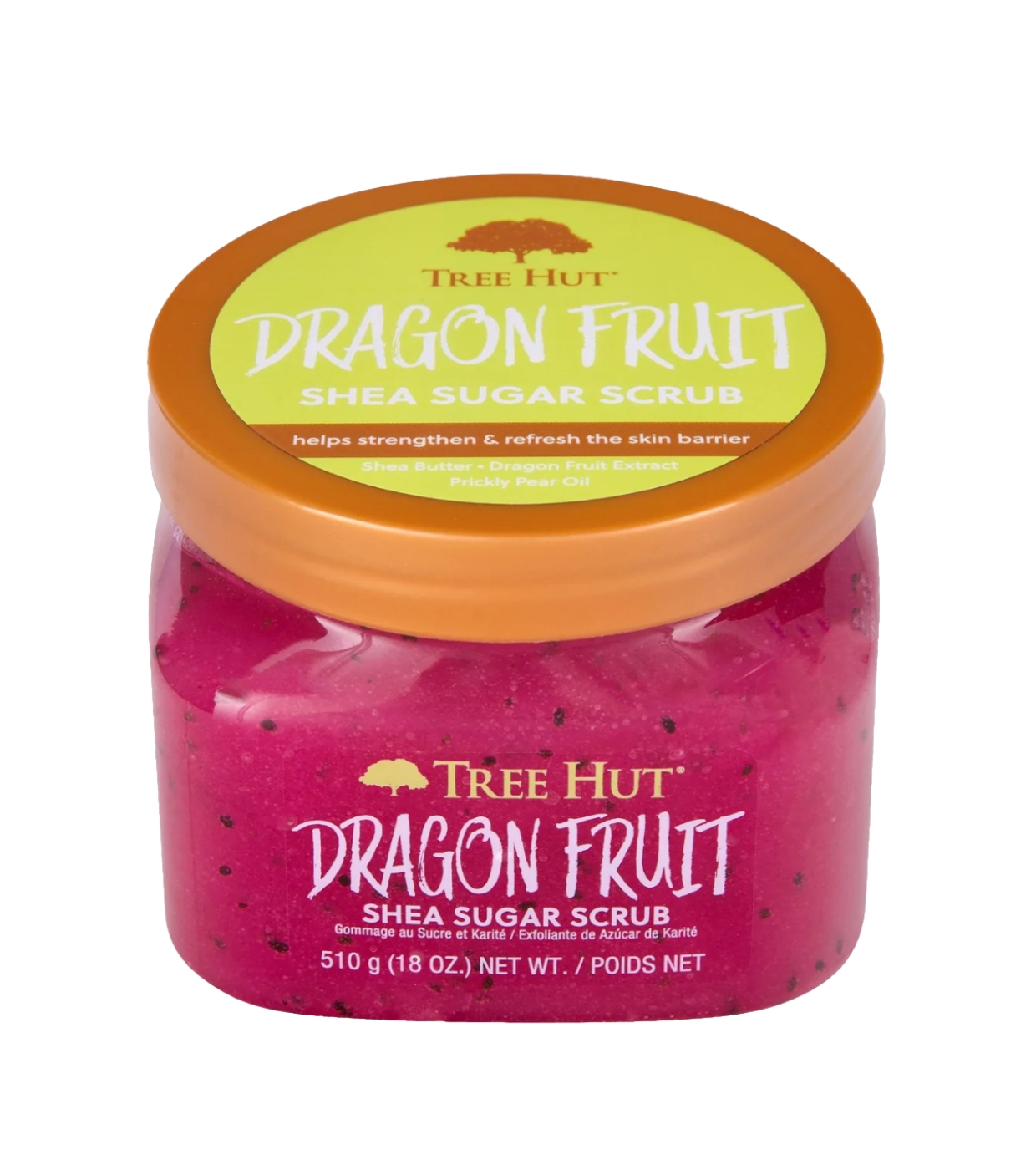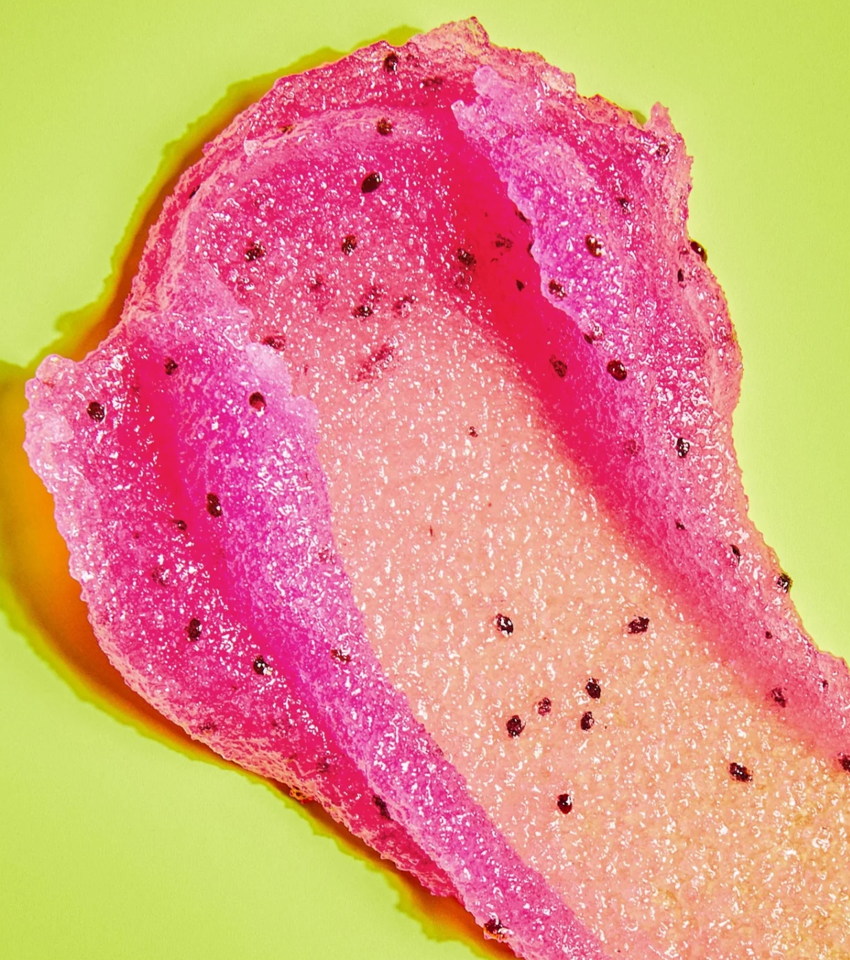 Sucrose, Glycerin, Polysorbate 20, Silica, Fragrance (Parfum), Actinidia Chinensis (Kiwi) Seeds, Phenoxyethanol, Caprylyl Glycol, Aqua (Water/Eau), Sorbic Acid, Caprylic/Capric Triglyceride, Ascorbic Acid, Macadamia Ternifolia Seed Oil, Oenothera Biennis (Evening Primrose) Oil, Persea Gratissima (Avocado) Oil, Prunus Amygdalus Dulcis (Sweet Almond) Oil, Carthamus Tinctorius (Safflower) Seed Oil, Butyrospermum Parkii (Shea) Butter, Hylocereus Undatus Fruit Extract, Opuntia Ficus-Indica Stem Extract, Retinyl PALmitate, Citrus Aurantium Dulcis (Orange) Peel Oil, Benzyl Alcohol, Tocopherol, Benzoic Acid, Limonene, Red 33 (CI 17200)