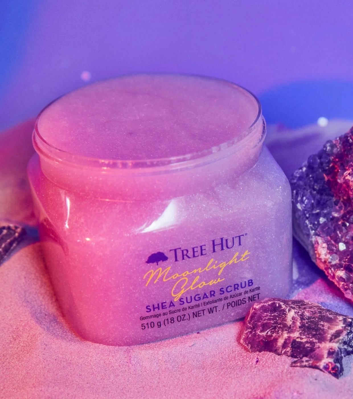 Formulado con azúcar, manteca de karité, hongo de nieve, magnesio, polvo de amatista y una selección de aceites naturales como onagra, aguacate, macadamia, almendra dulce, cártamo y naranja, deja la piel suave, hidratada y deliciosamente perfumada.
