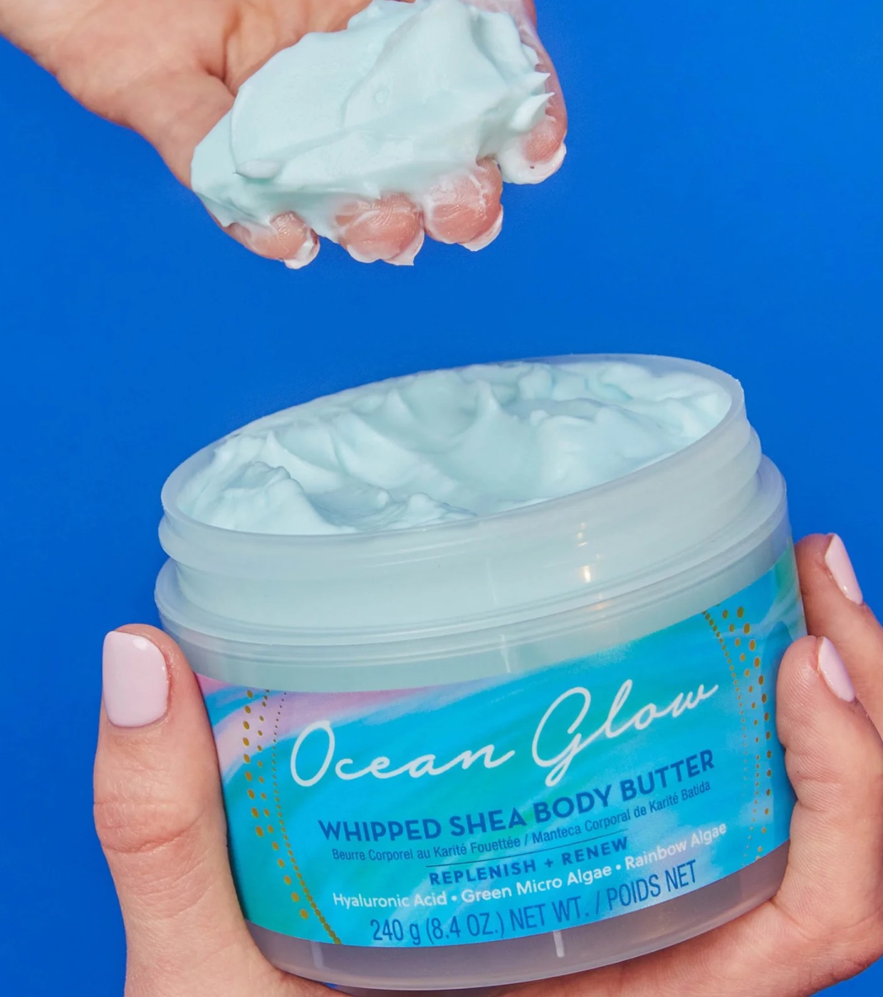 Disfruta de una piel nutrida, suave y revitalizada con la manteca corporal Ocean Glow de Tree Hut, formulada con ingredientes inspirados en el océano que reponen la humedad natural de la piel.