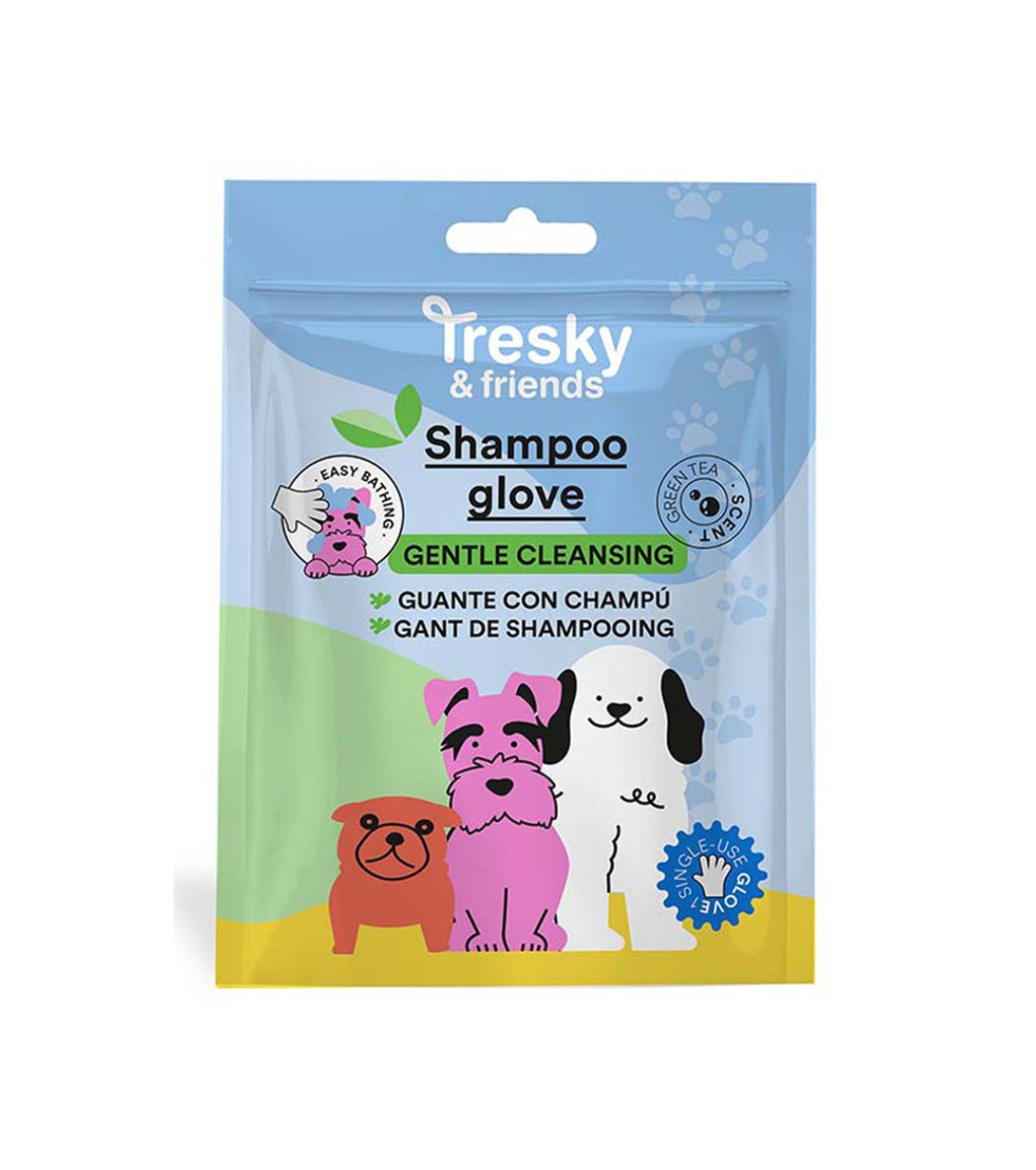 El guante con champú de TRESKY & FRIENDS es una solución práctica diseñada para simplificar la higiene diaria de perros y gatos, combinando limpieza y masaje en un solo gesto.