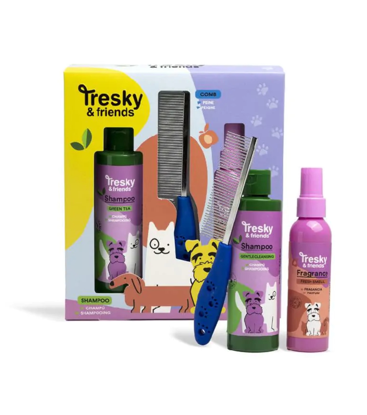 El set para la higiene de mascotas de TRESKY & FRIENDS reúne todo lo necesario para mantener a tu perro limpio, cuidado y cómodo en su día a día.