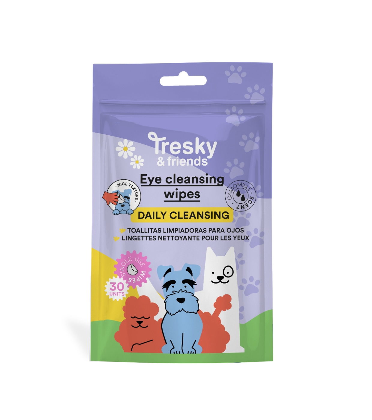 Las toallitas limpiadoras de ojos de TRESKY & FRIENDS están especialmente diseñadas para la higiene diaria del contorno ocular de perros y gatos.