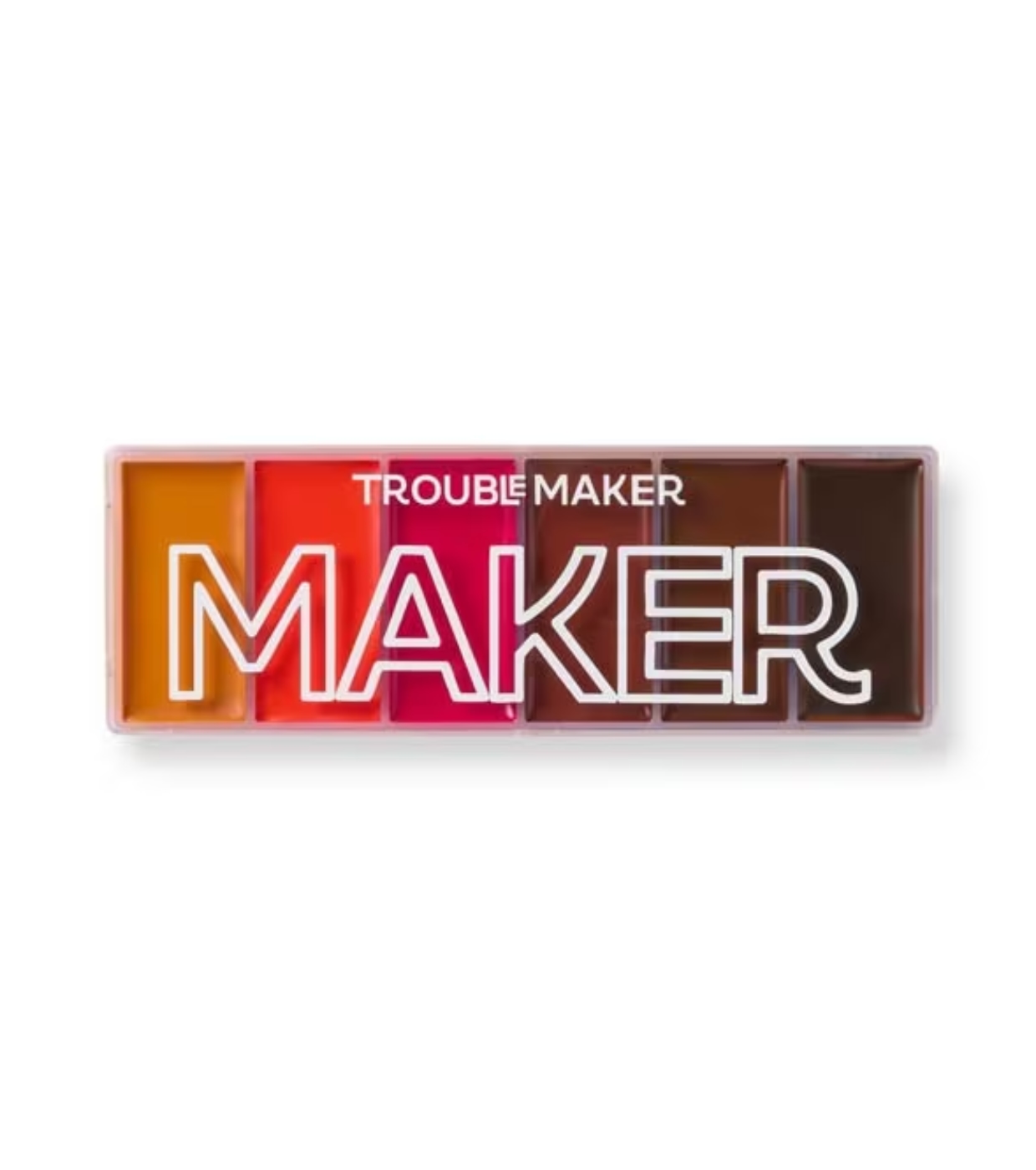 La paleta de rostro Maker de Trouble Maker pone a prueba tu creatividad con 6 tonos intensos de rubor, bronceador y contorno en una fórmula cremosa, difuminable y modulable.