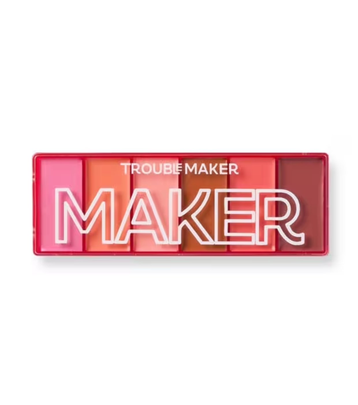 La paleta de rostro Maker de Trouble Maker pone a prueba tu creatividad con 6 tonos intensos de rubor, bronceador y contorno en una fórmula cremosa, difuminable y modulable.