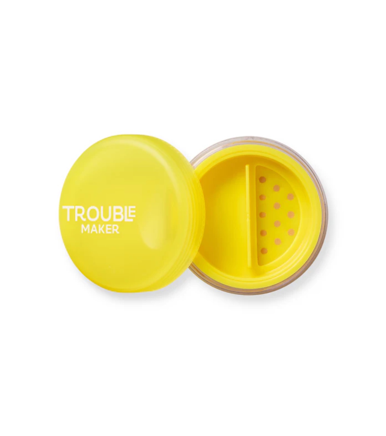 El polvo fijador Trouble Maker On The Loose es tu aliado para lograr un acabado impecable que dura todo el día.