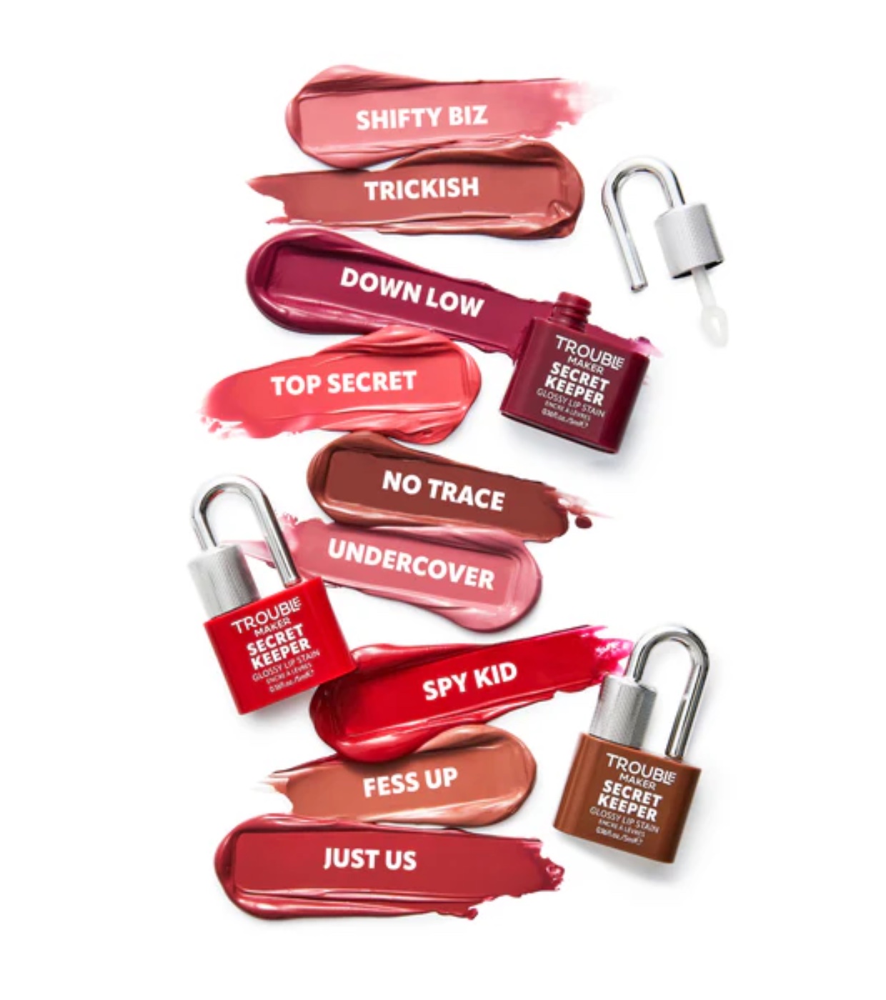 Descubre el secreto de unos labios con color duradero y acabado gloss con el tinte labial efecto gloss Secret Keeper de Trouble Maker, un innovador labial que combina lo mejor de un gloss y un tinte.