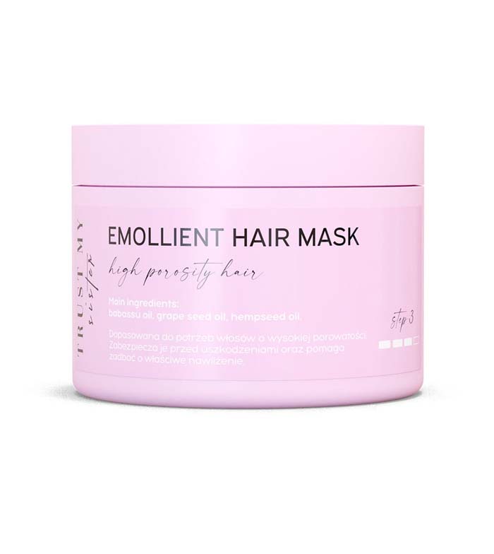Una mascarilla con una composición cuidadosamente seleccionada con aceite de semilla de algodón, semilla de uva, cáñamo y babasú, ideal para cabellos con porosidad alta.