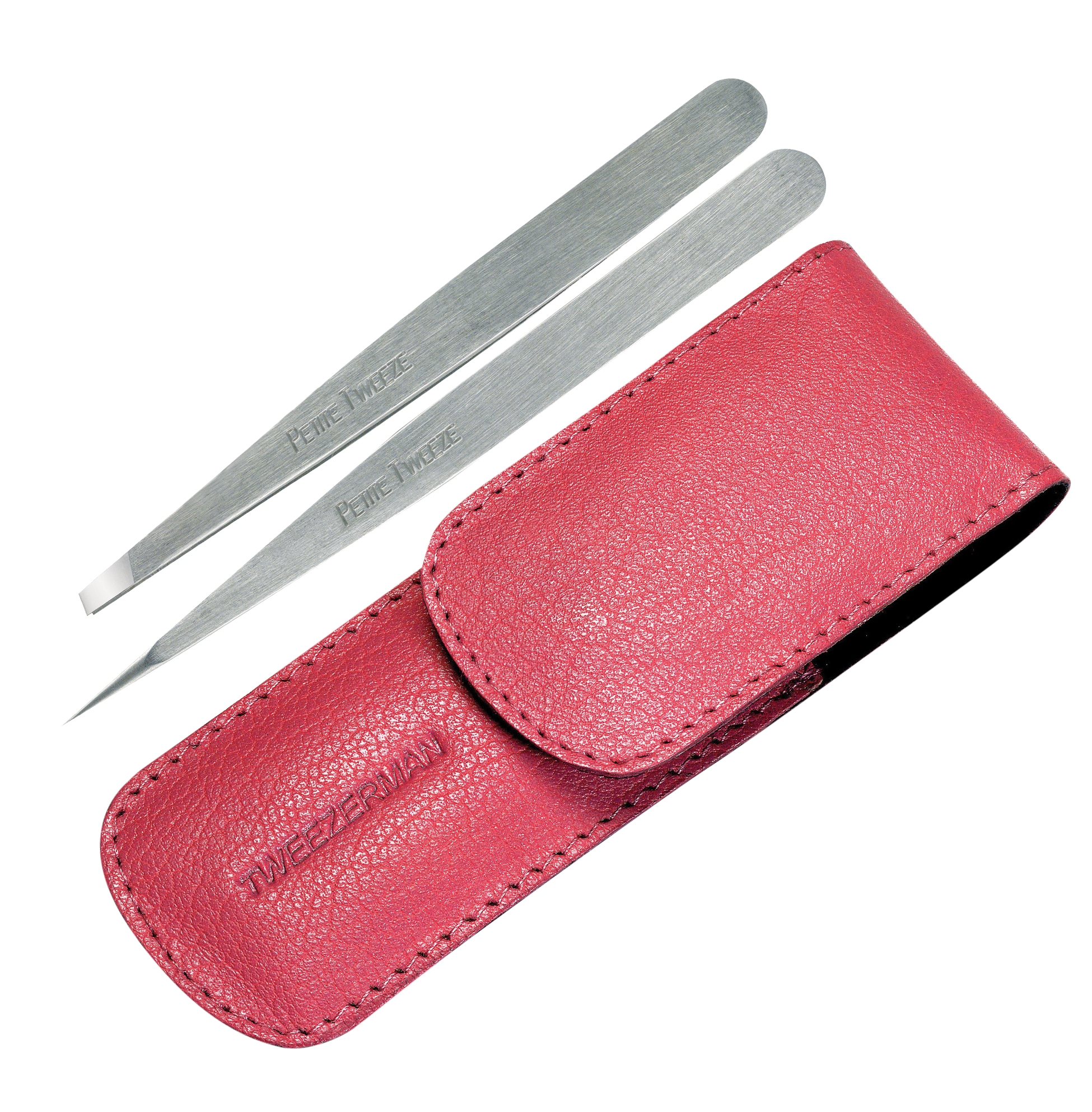 Set de nuestra famosa pinza Slant y Point en medida especial (3 ¼ “). Cada una de ellas tiene las puntas perfectamente afiladas. Presentadas en un estuche de piel, un set en miniatura perfecto para el bolso y viaje.