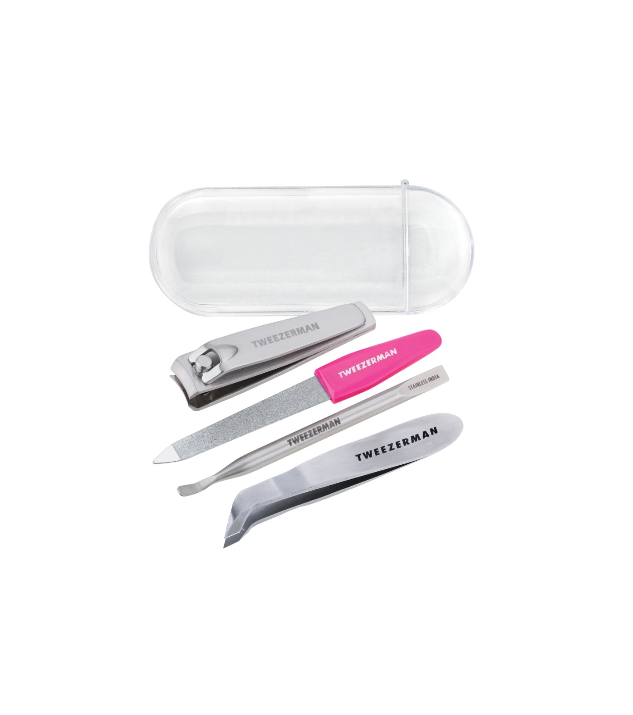 Este set de manicura portátil de Tweezerman incluye herramientas esenciales de alta calidad para el cuidado de las uñas.