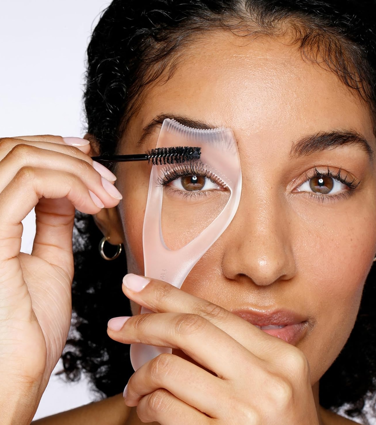 Gracias a su diseño ergonómico, esta herramienta se adapta perfectamente a la forma del ojo, protegiendo el párpado de cualquier contacto accidental con el cepillo mientras aplicas tu rímel.